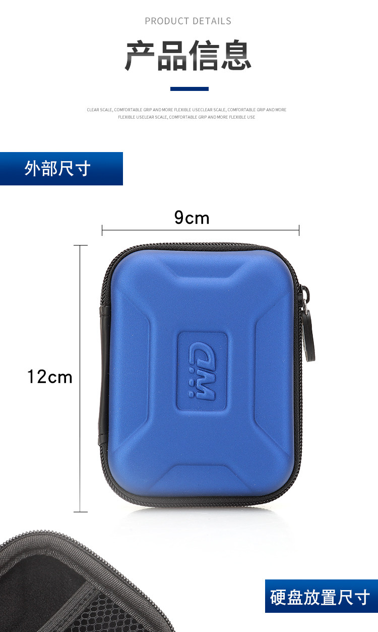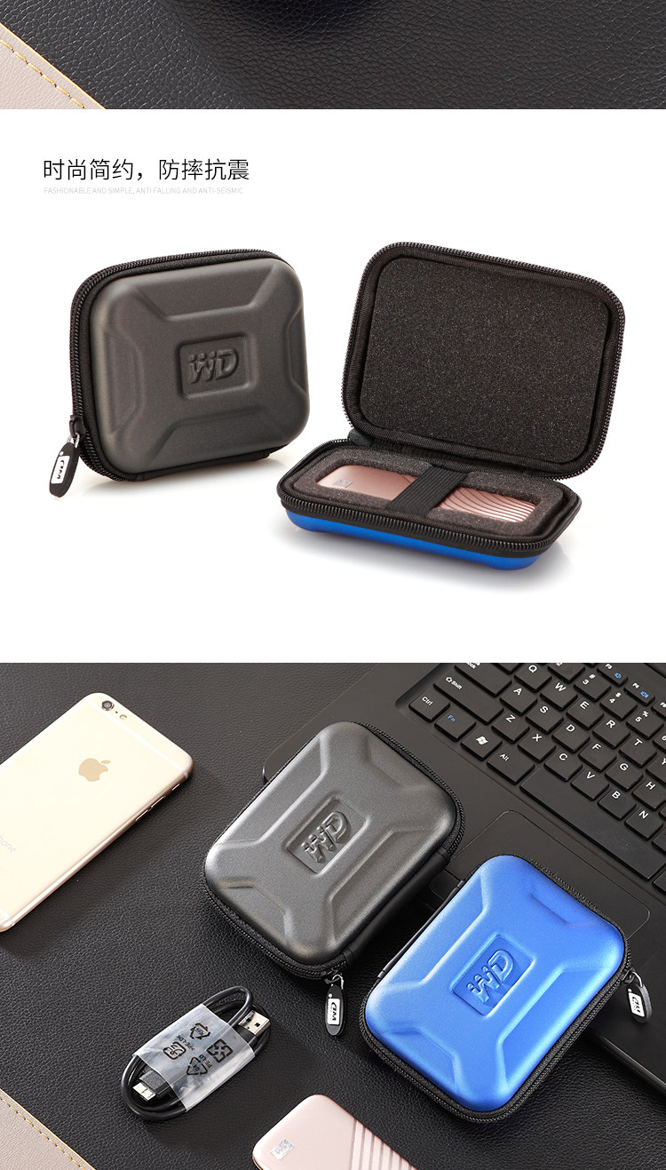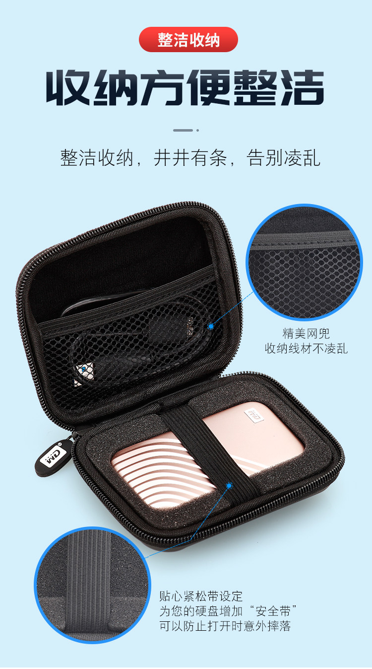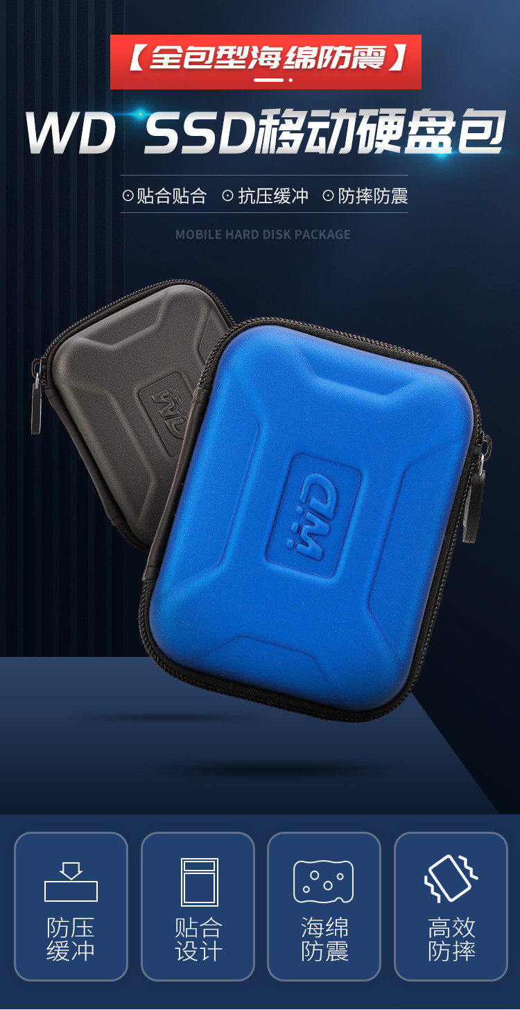 Suitable for Wd Western Digital Mobile Solid-State Drive Storage Bag, Western Digital Ssd Hard Drive Bag, Sponge Shockproof and Anti-Drop Hard Shell Bag