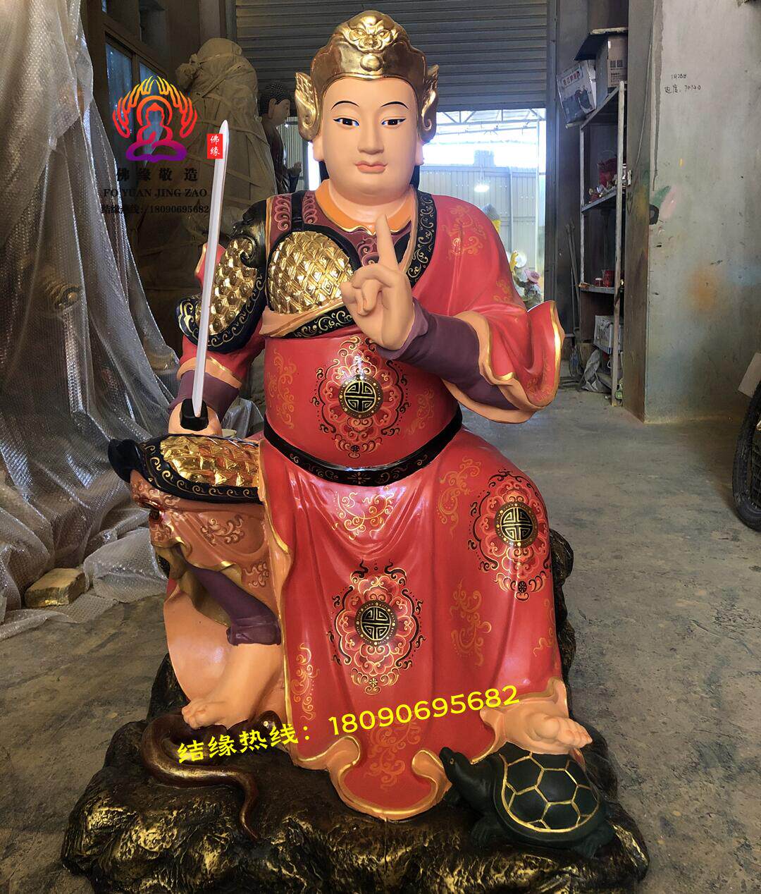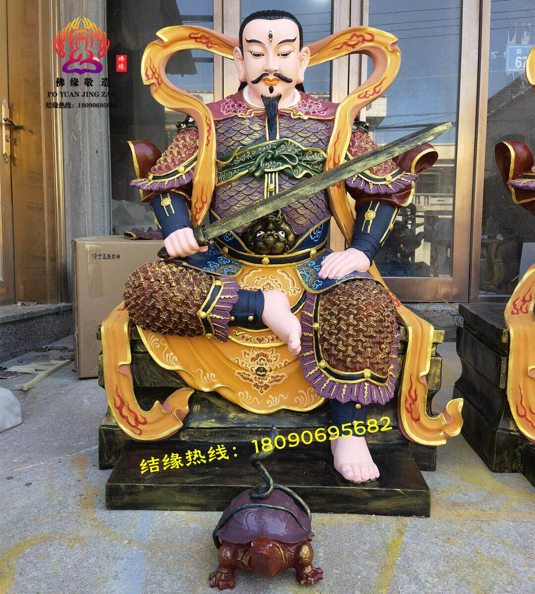 Resin Fiberglass Cast Bronze Statue of the God of War, Zhenwu, the True Martial Arts Master, the Thunder Master, and the Divine Emperor of Demonic Extermination
