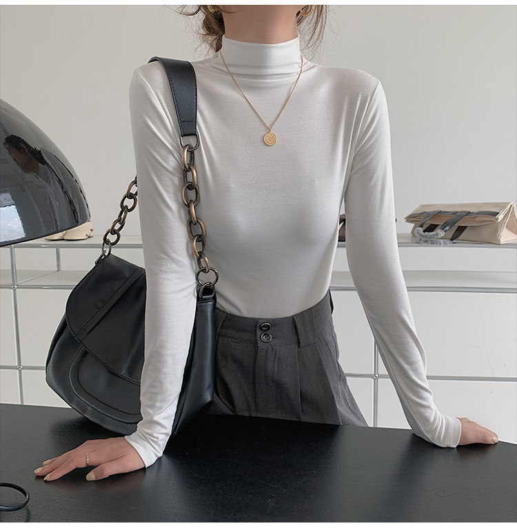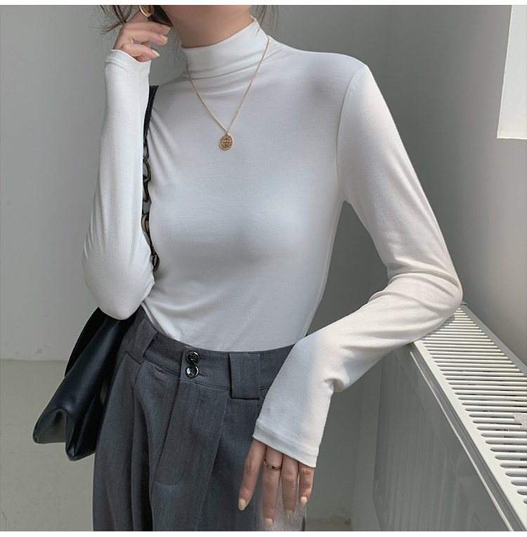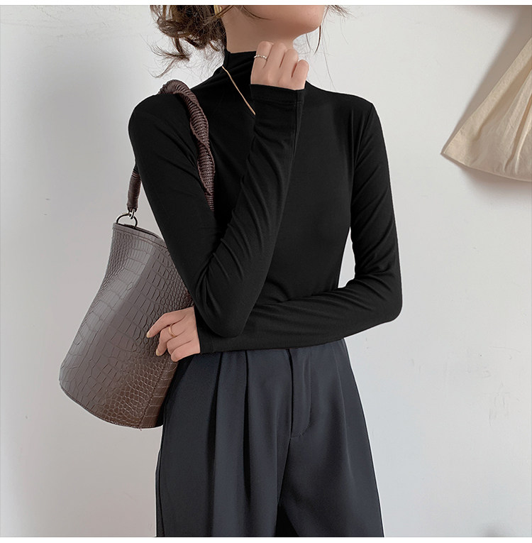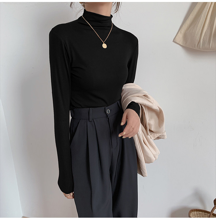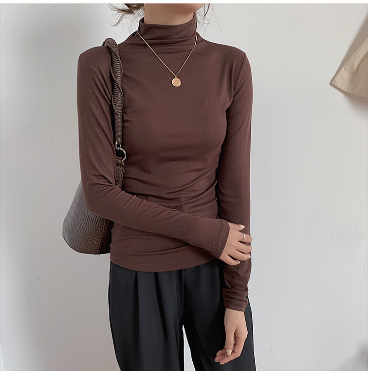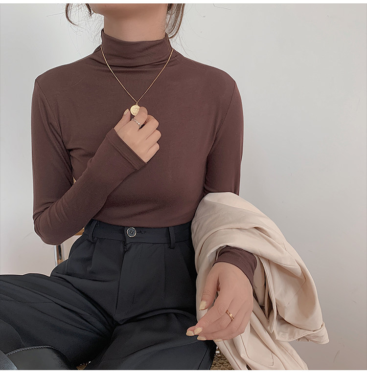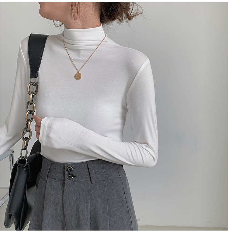 Autumn and Winter Thin Fleece Thermal Base Layer Modal Half-Turtleneck Brushed T-Shirt for Women, Slim Fit Layering Top Ins