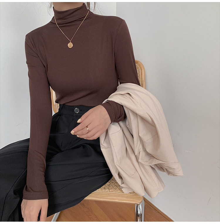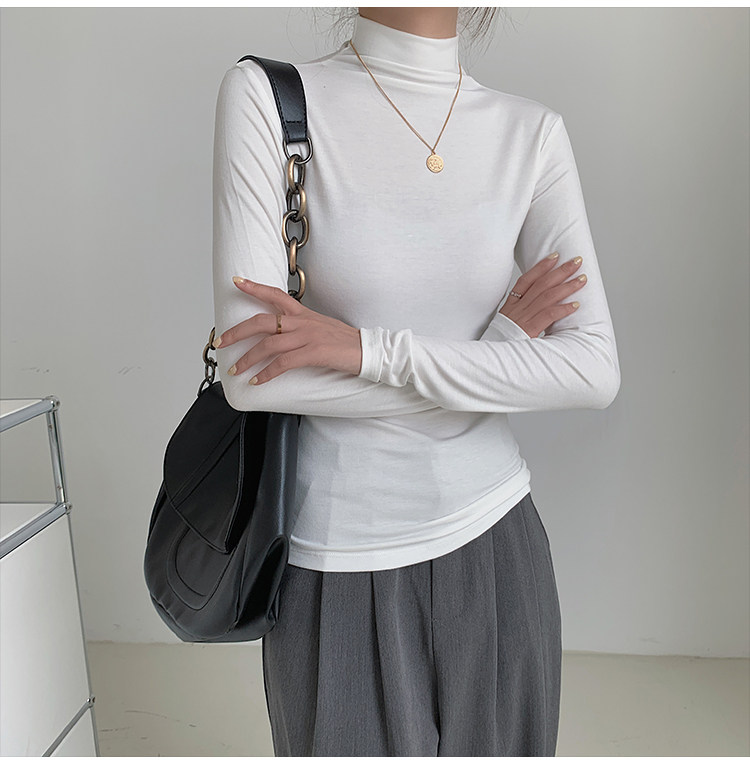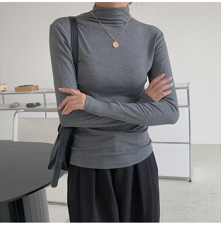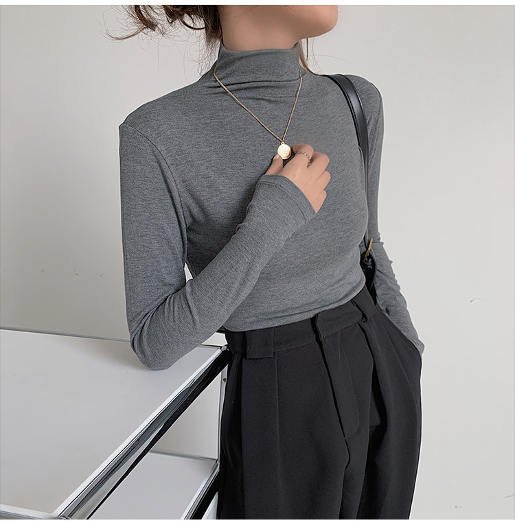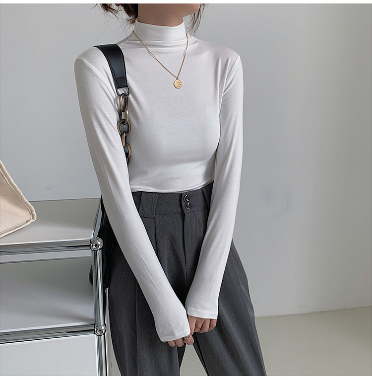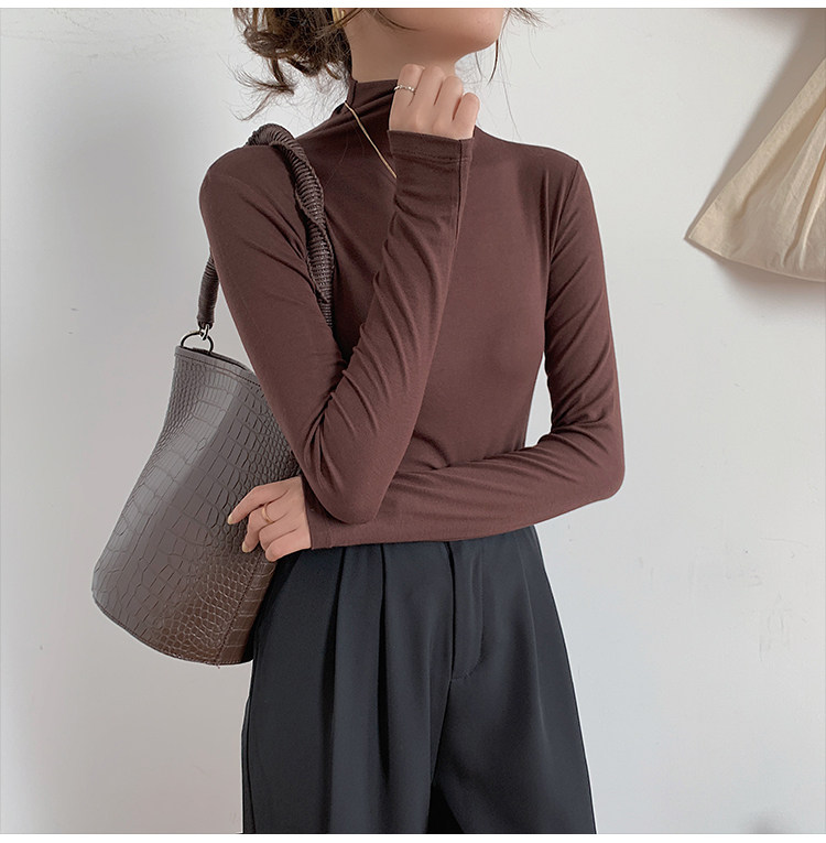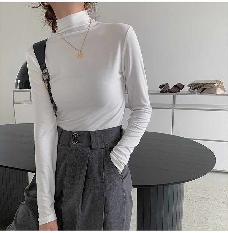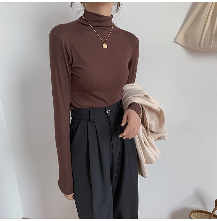 Autumn and Winter Thin Fleece Thermal Base Layer Modal Half-Turtleneck Brushed T-Shirt for Women, Slim Fit Layering Top Ins