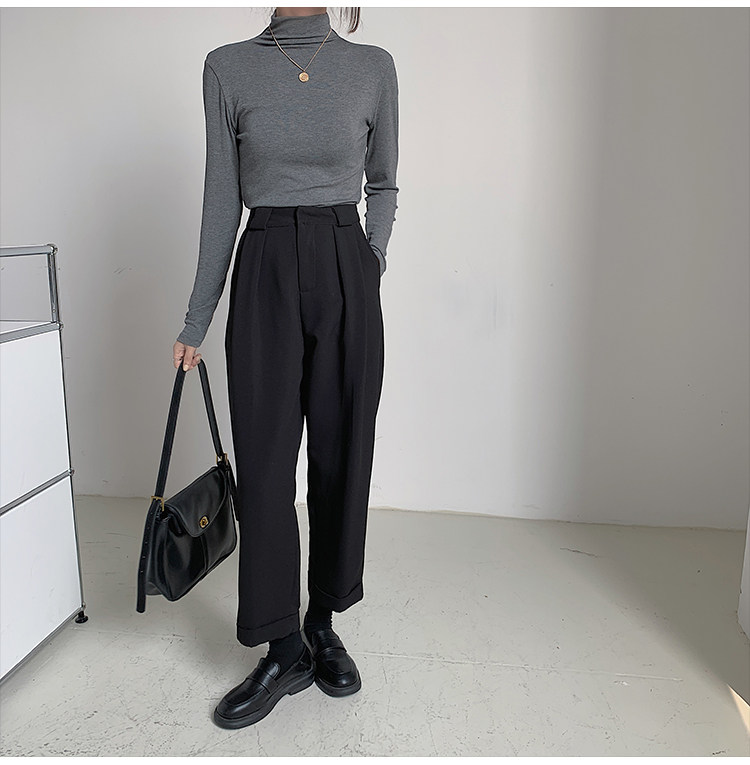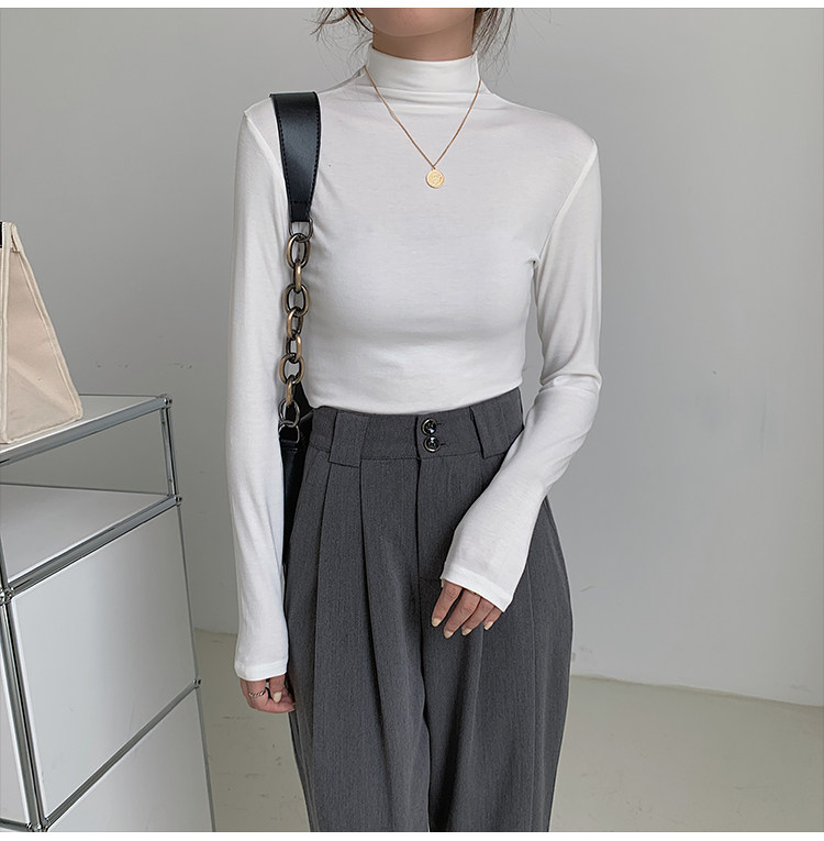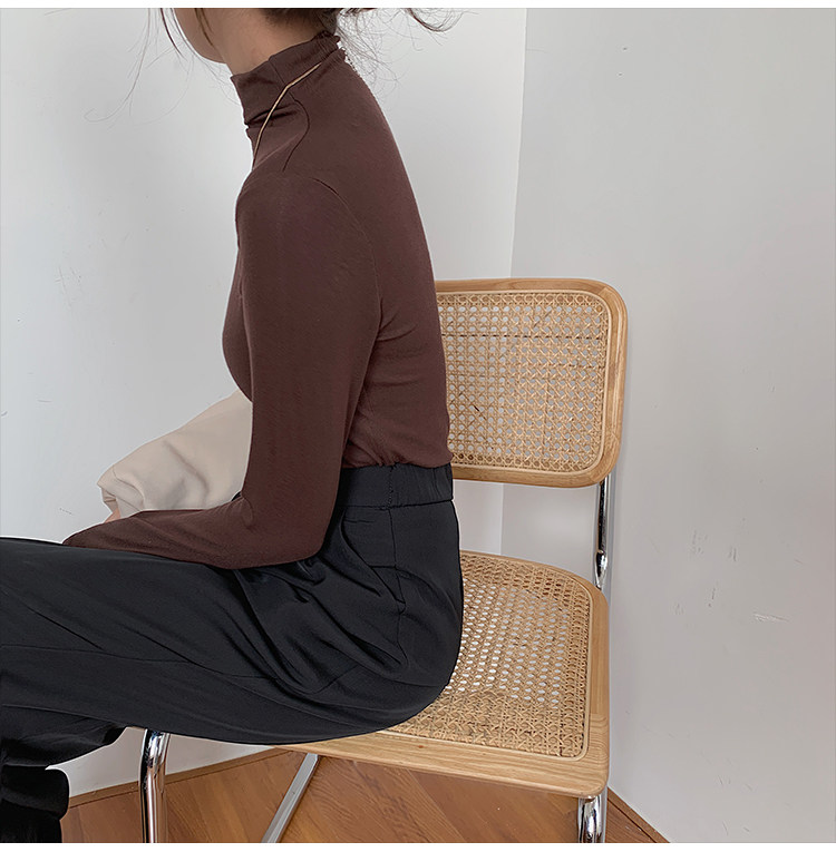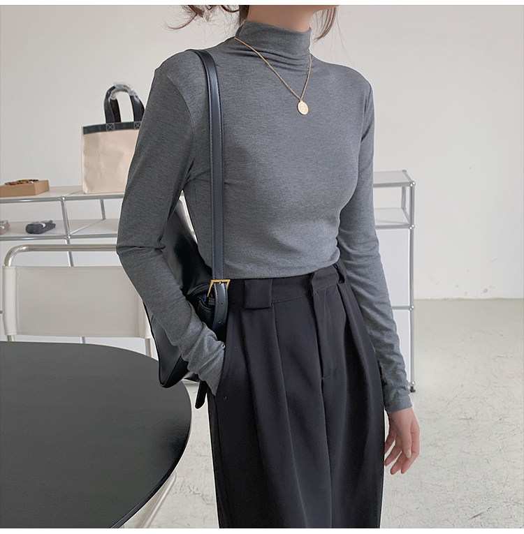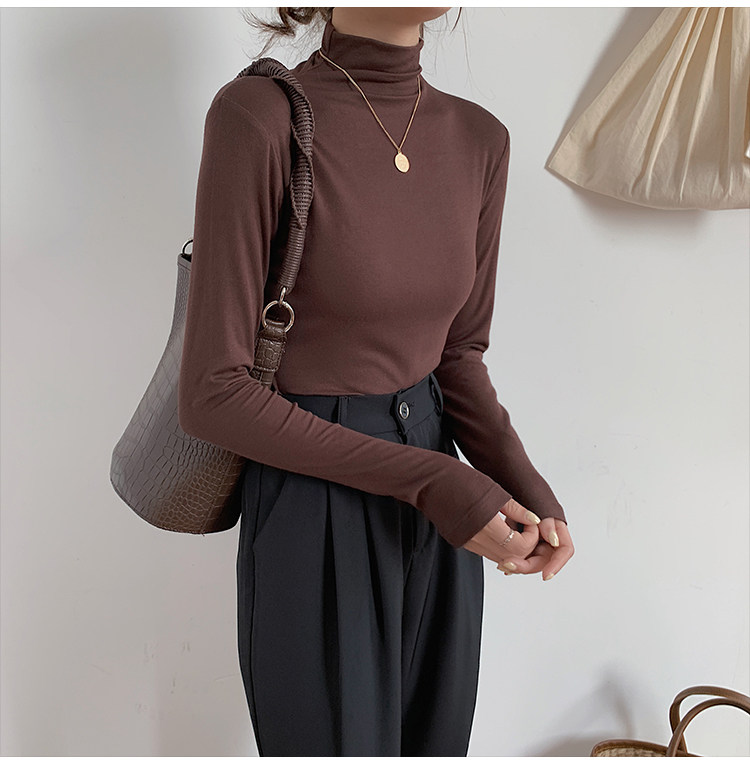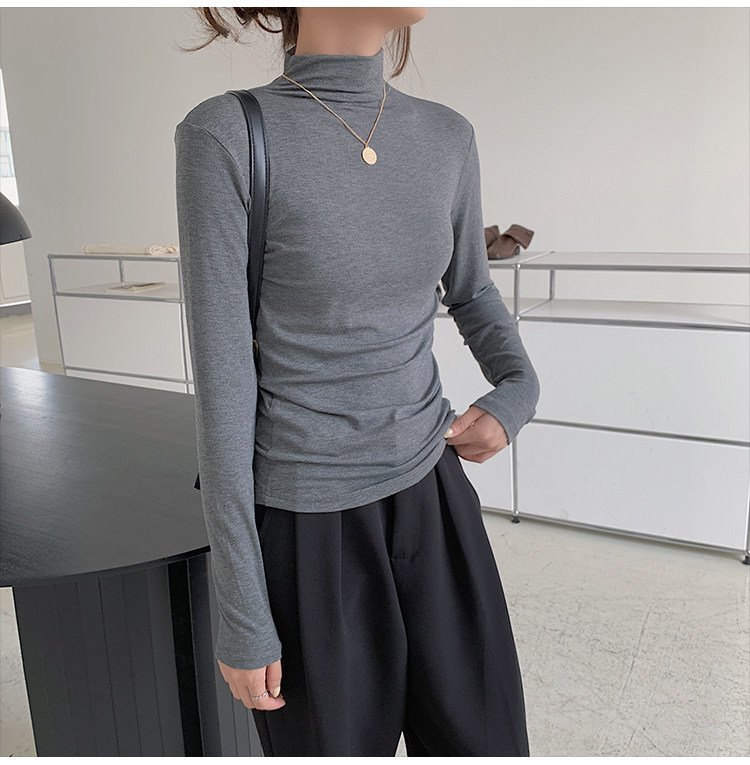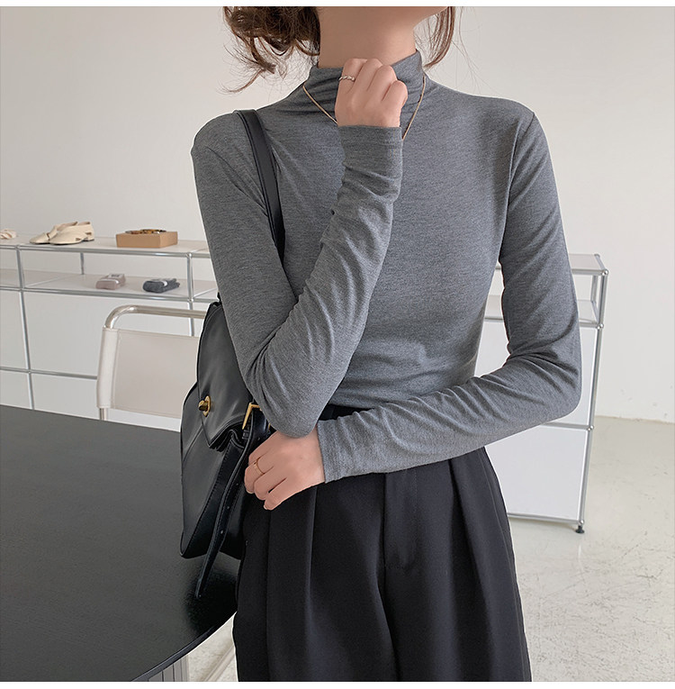 Autumn and Winter Thin Fleece Thermal Base Layer Modal Half-Turtleneck Brushed T-Shirt for Women, Slim Fit Layering Top Ins