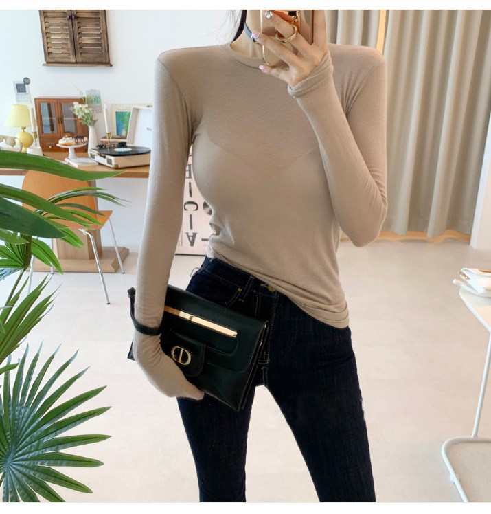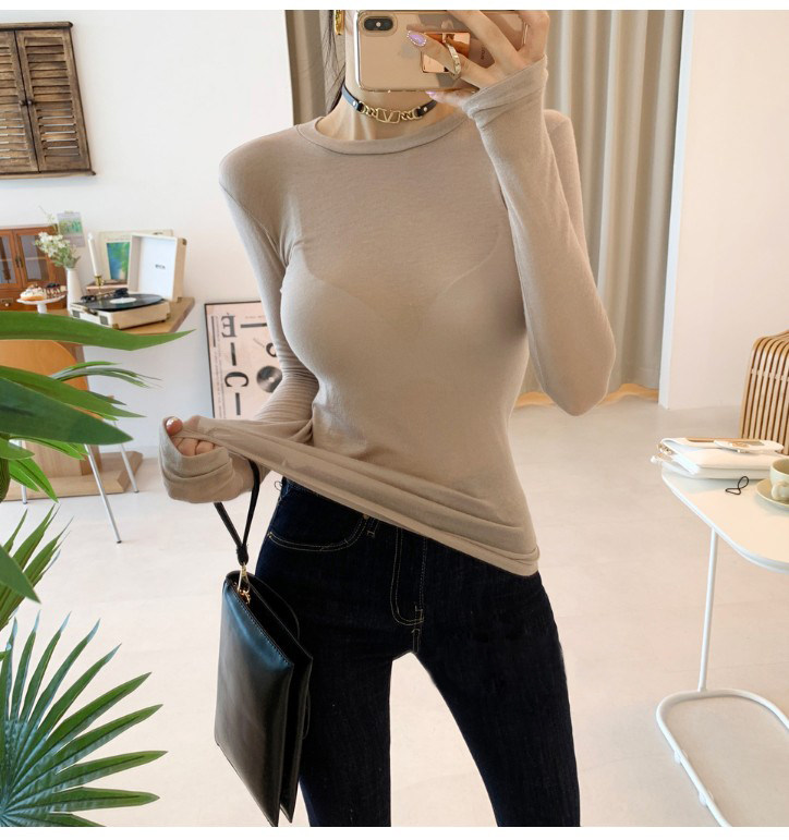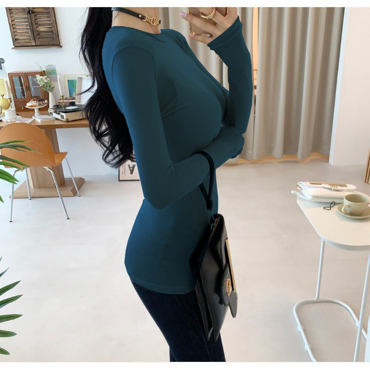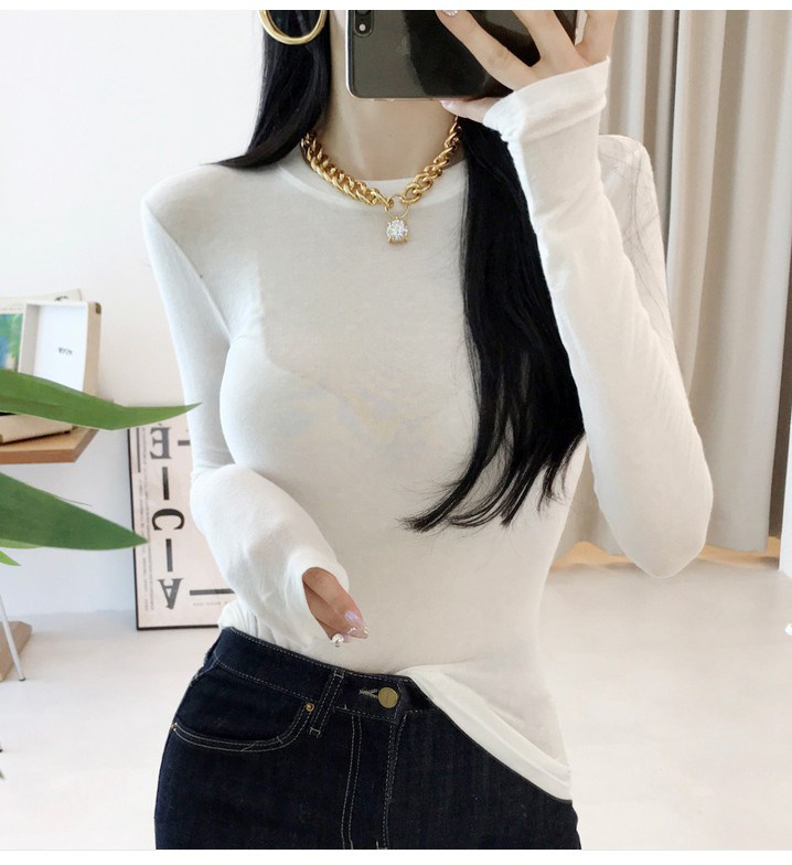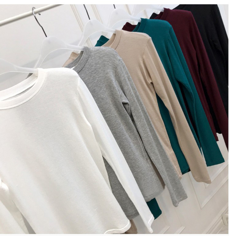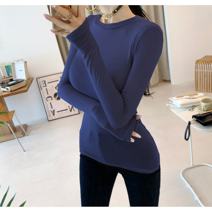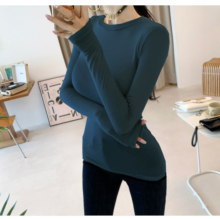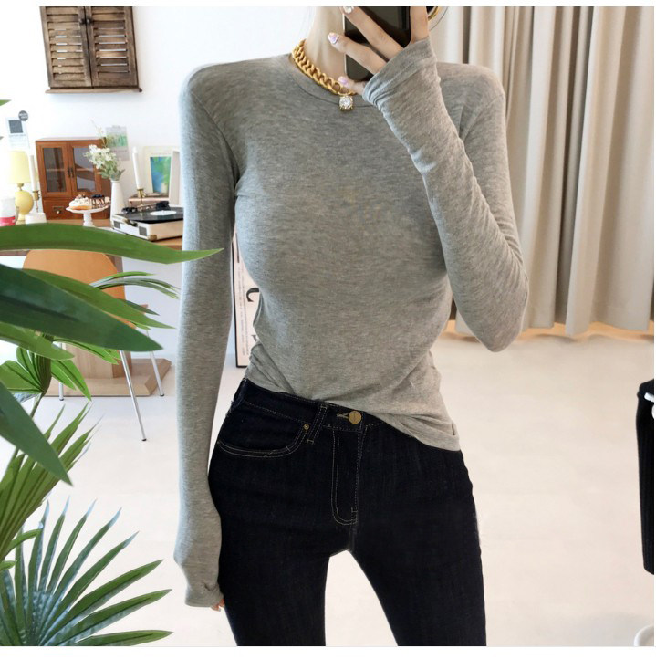 Pure Desire Style Round Neck Solid Color Mask T-Shirt for Women, Long Sleeve, Early Spring New Korean Version, Slim Fit, Stretchy, Figure-Flattering Top ins