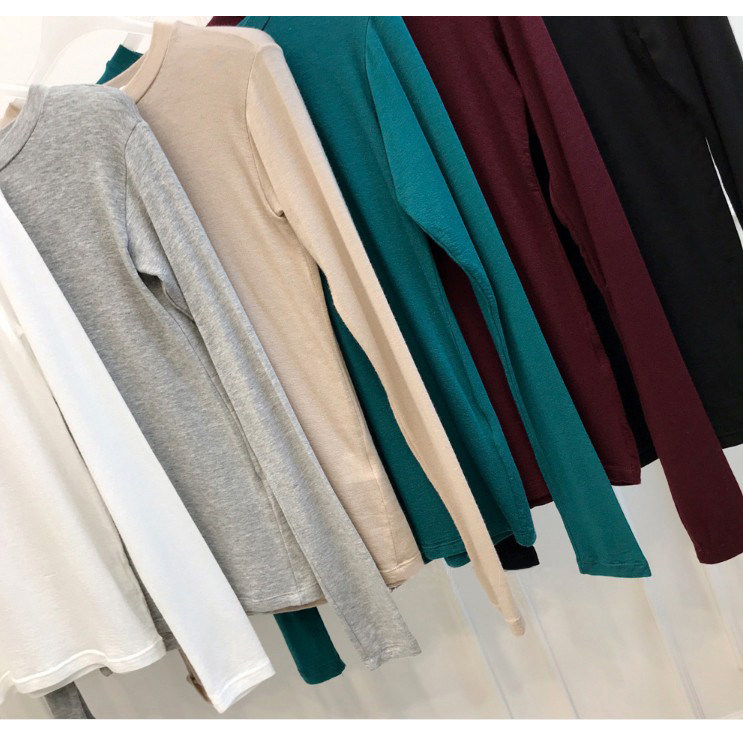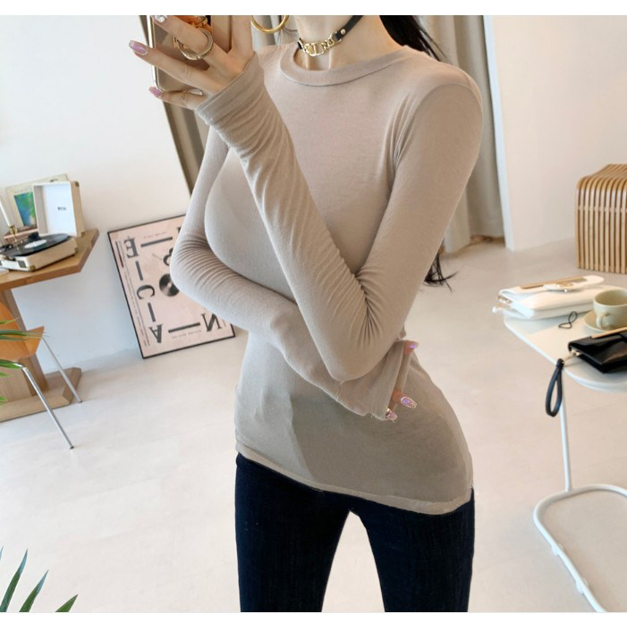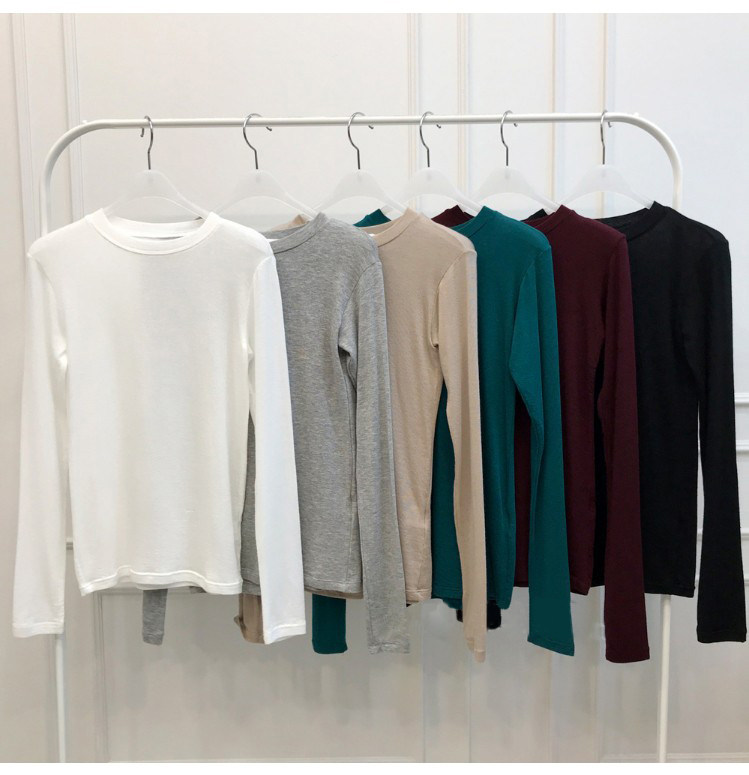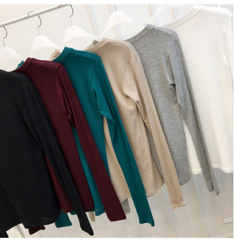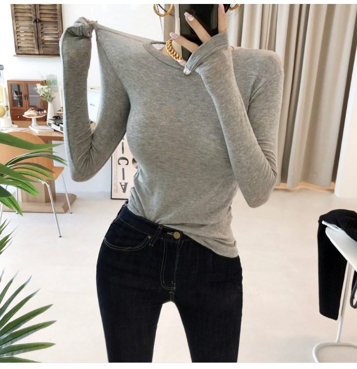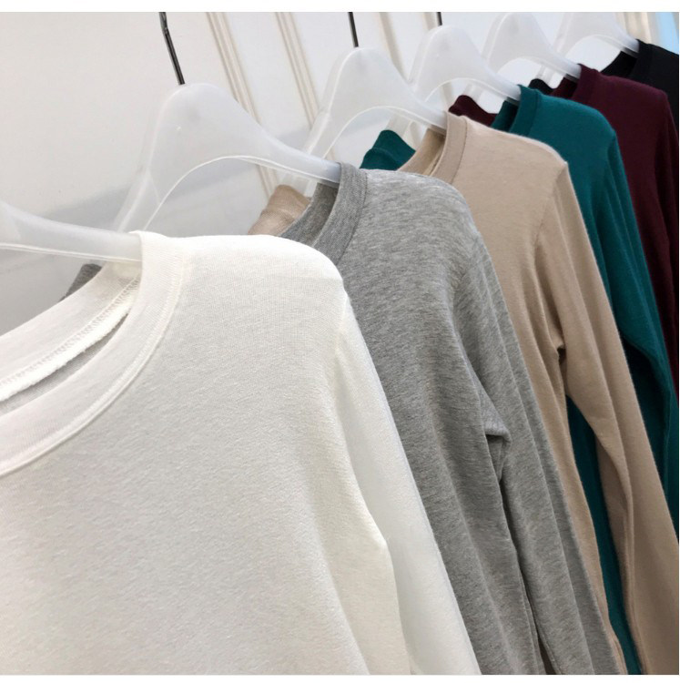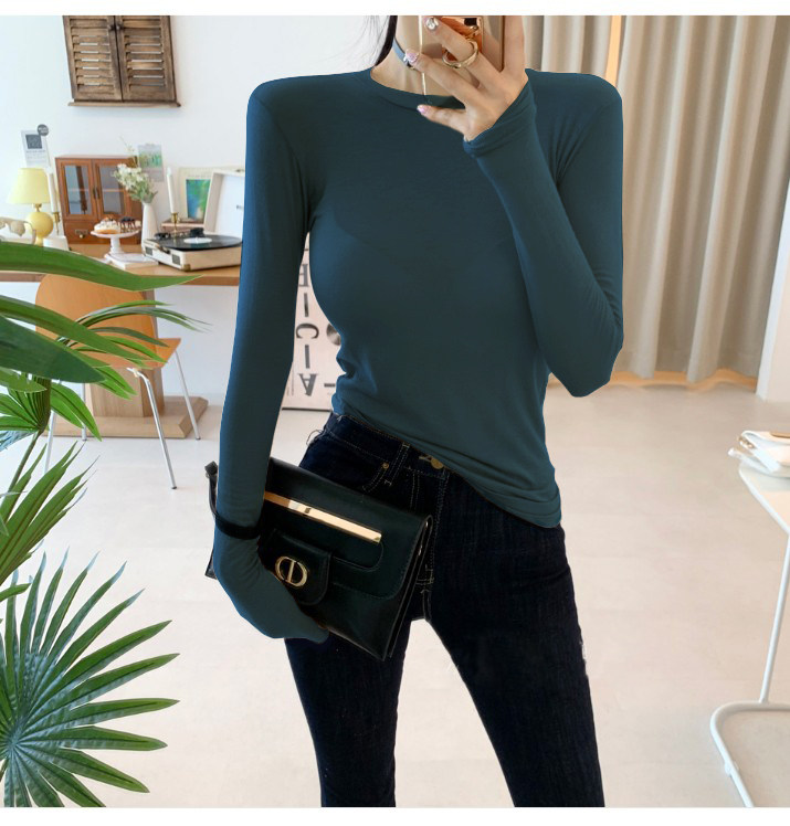 Pure Desire Style Round Neck Solid Color Mask T-Shirt for Women, Long Sleeve, Early Spring New Korean Version, Slim Fit, Stretchy, Figure-Flattering Top ins