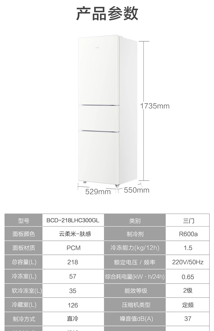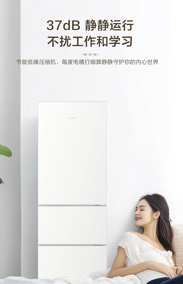 Haier 218L three-door white soft-freezing ultra-thin small refrigerator for home rental dormitory energy saving and low noise
