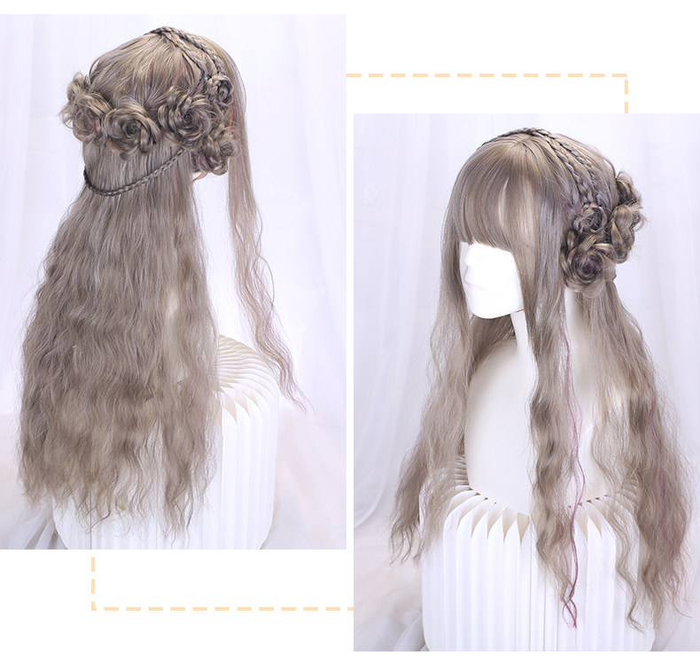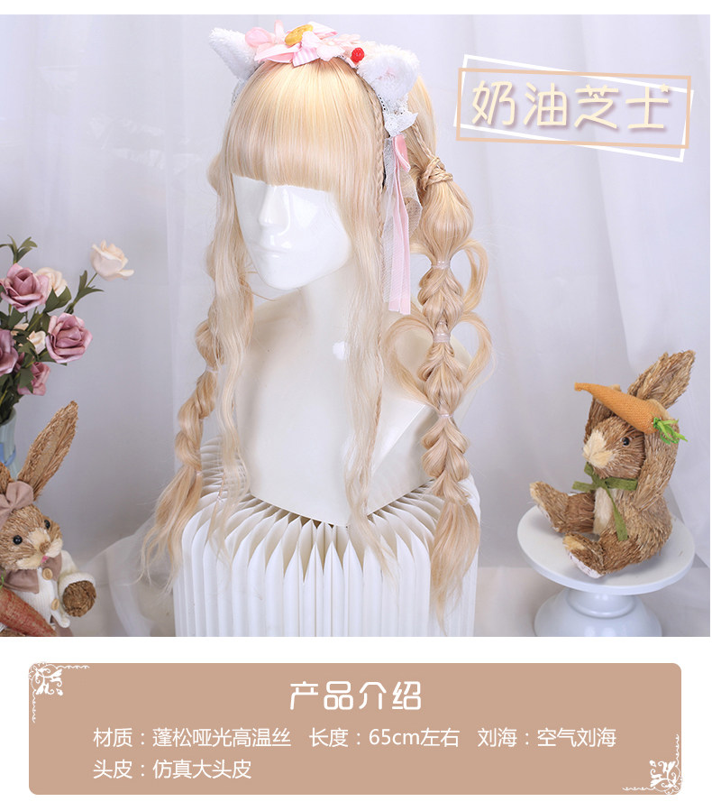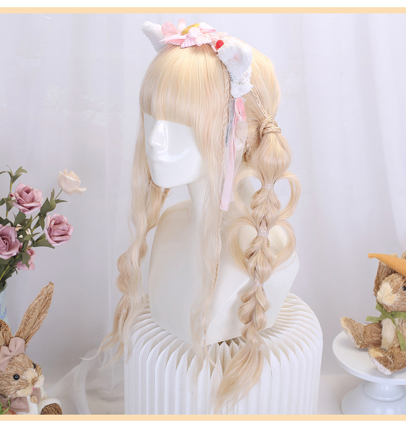 Lolita wig full headset women's long curly hair cornrows long hair braided style lolita golden wig