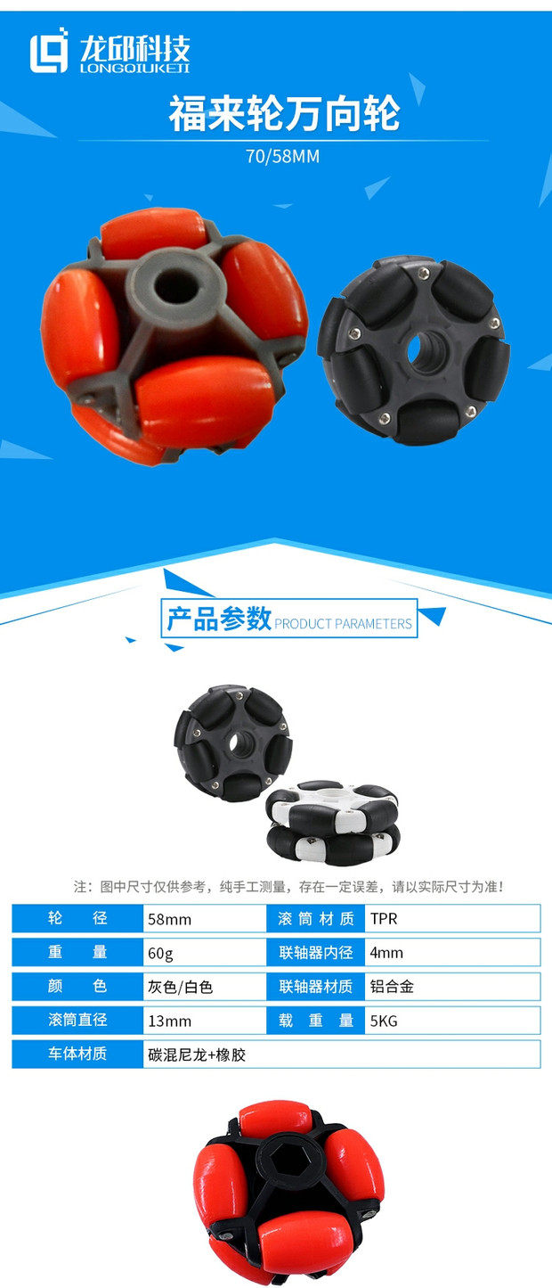 Fulailun Omni Wheel 70/58mm Omni Wheel 14135Ros Platform Omnidirectional Wheel Universal Wheel