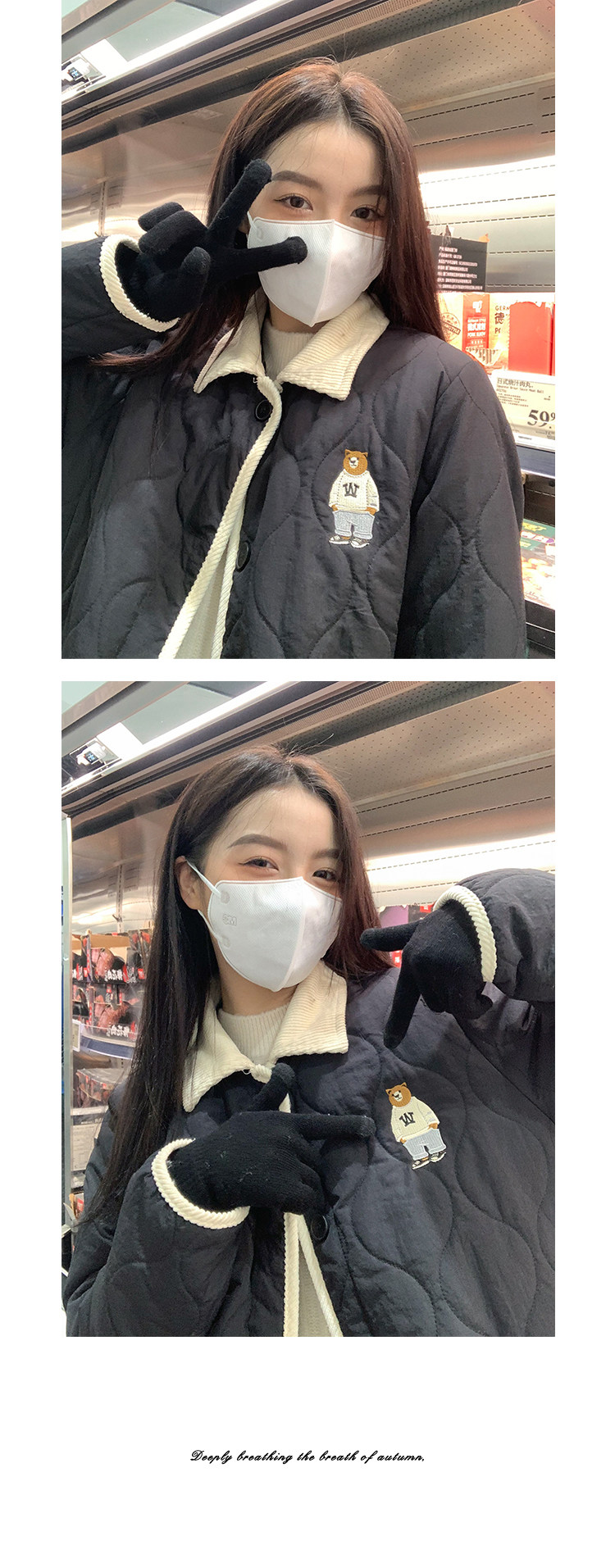Xinbangbang coat women's autumn and winter contrasting color stitching lapel 2026 Korean version new diamond pattern bear cotton coat