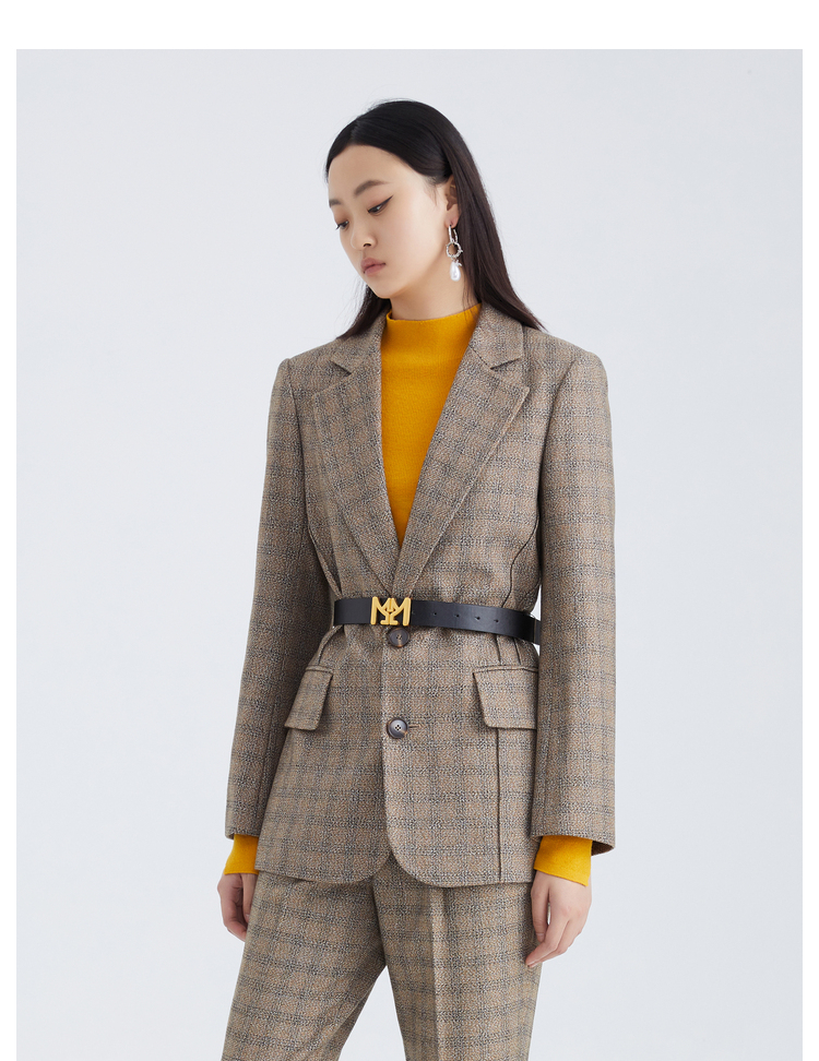 12.12 New Bargain: Manya Nu Winter High-End Plaid Sheep Wool Blazer Ml42Sc019 Brand 1498