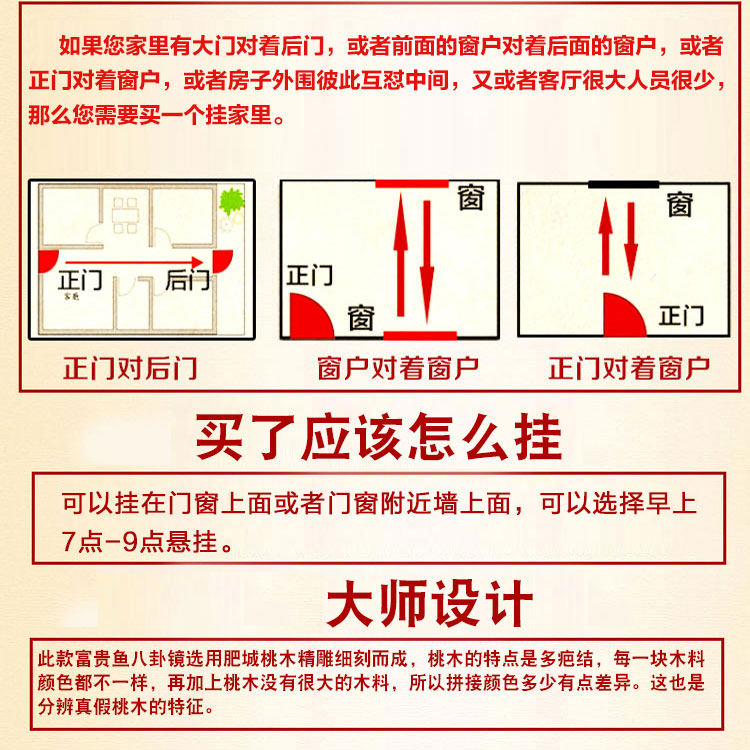 Pisces Yin Yangyu Bagua Mirror Household Peach Wood Pendant Entry Door Door to Balcony Window Road Floor Corner Hall