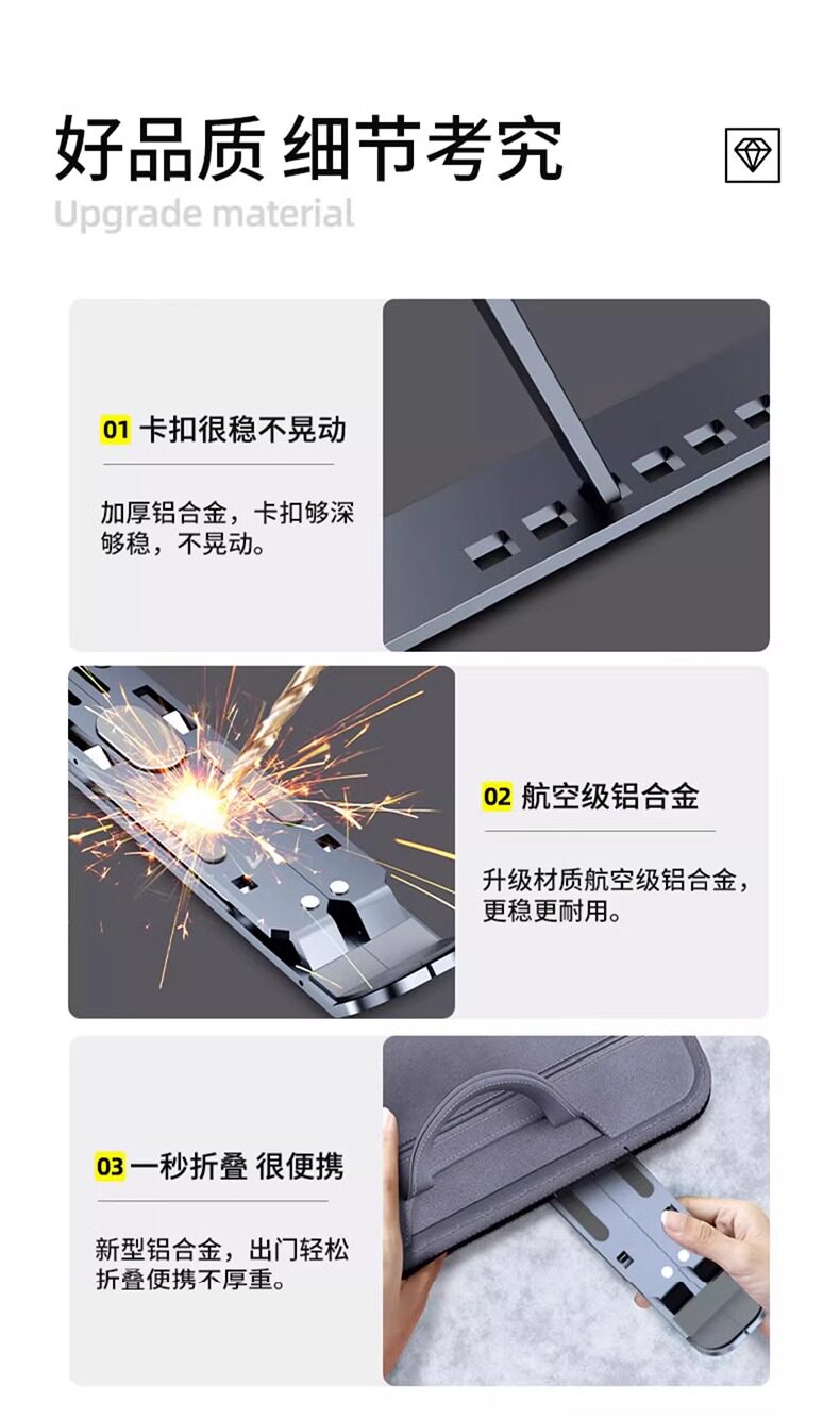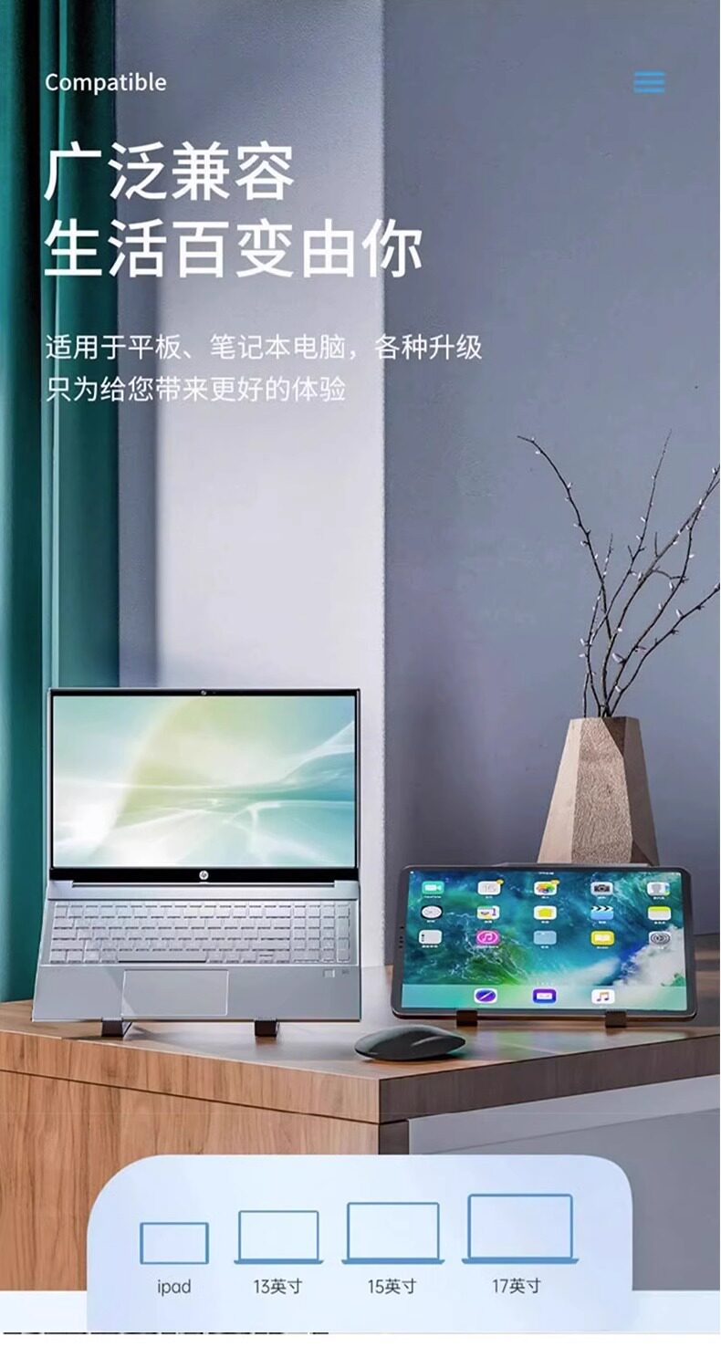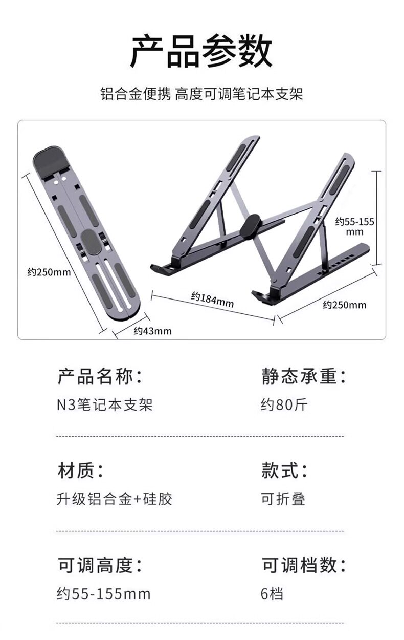 Color Classification Charming Black[Abs Eco-Friendly Material + Universal for Tablets and Laptops + Silicone Anti-Slip + Foldable, Portable, and Easy to Carry],Cool Black[Upgraded Thickened Aluminum Alloy + Tablet, Universal for Laptops + Silicone Anti-Slip + Foldable, Portable and Easy to Carry],Apple Silver[Upgraded Thickened Aluminum Alloy + Tablet, Universal for Laptops + Silicone Anti-Slip + Foldable, Portable and Easy to Carry],Rose Red[Upgraded Thickened Aluminum Alloy + Tablet, Universal for Laptops + Silicone Anti-Slip + Foldable, Portable and Easy to Carry],Apple Silver[Flagship Upgraded Version]Thickened★Widen★Silicone Face Protection★Free Storage Bag,[Space Gray N8 Upgraded Version]Double Layer Heightening★Universal for Laptops and Tablets★Comes with Portable Storage Bag
