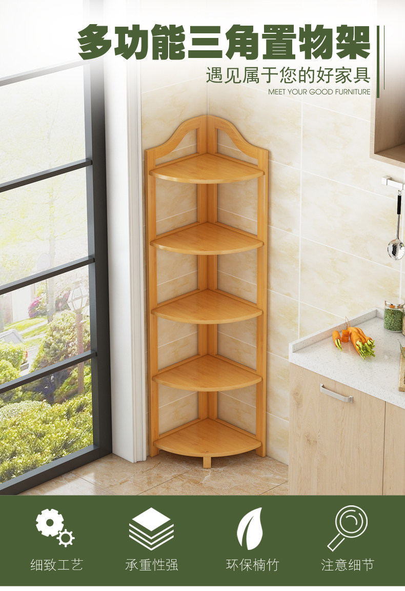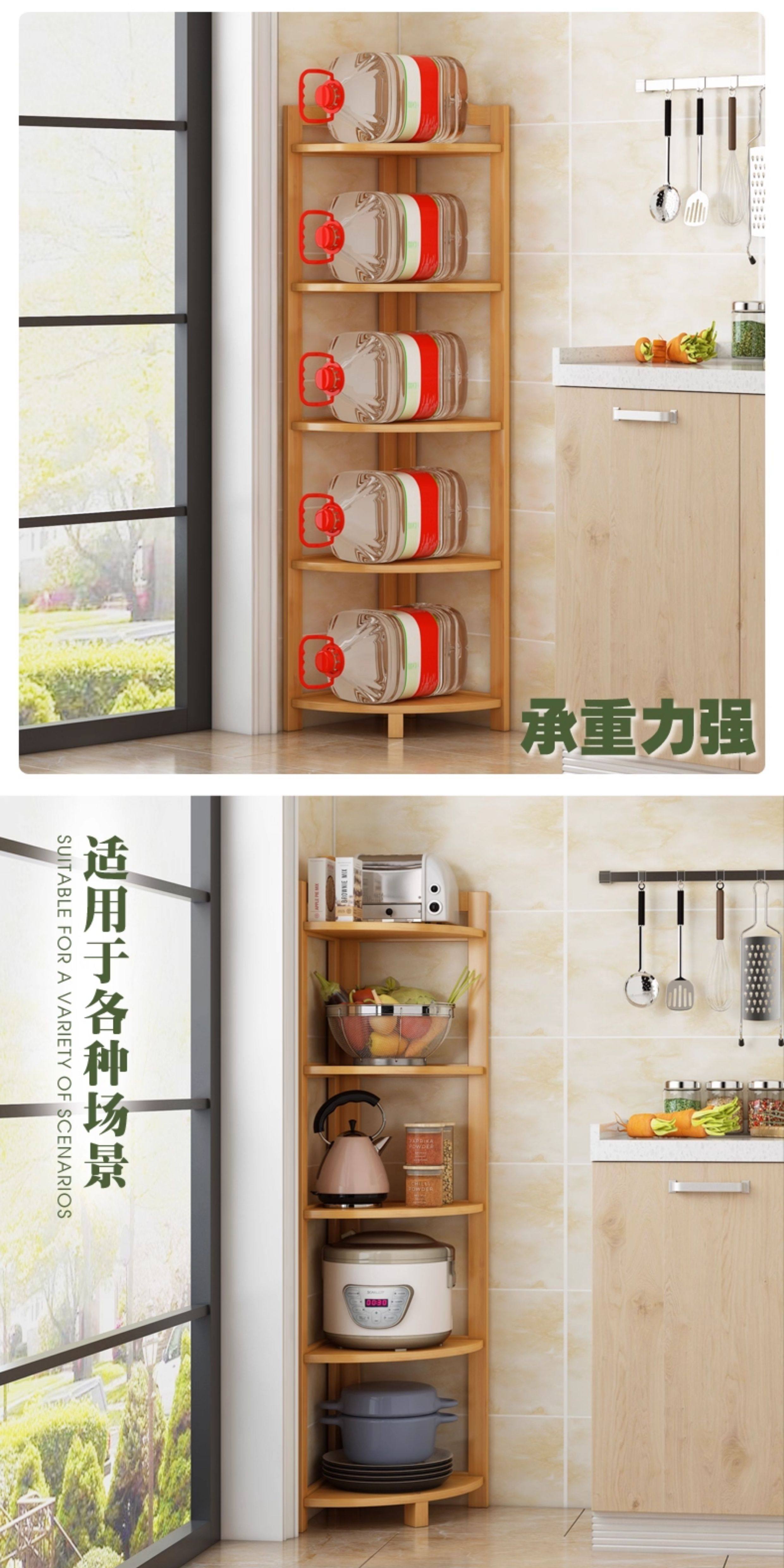 Corner Kitchen Storage Rack, Multi-Layer Bamboo Storage, Household Floor-Standing Multi-Layer Vegetable Basket, Multi-Functional for Storing Fruits and Vegetables