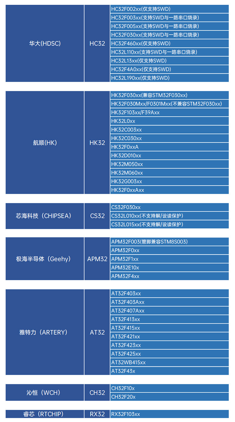 Color Classification ①Only Supports [Stm32/Gd32/Mm32/Hk32/Apm32/Cs32/At32/Ch32/Rx32/Cm32/N32],②Support [Stm8],③Only Supports [Xintang N76E/Ml51/Ms51/Nuvoton (Cortex-M)],④Only Supports [Nrf51/52/Cc25Xx],⑤[Stm32/Gd32, Etc.] + [Mm32/Hc32/Cm32/Py32/Amt32/Cms32/Sgk32] + [Stm8],⑥【STM8】+【N76E/ML51/MS51/NUVOTON(Cortex-M)】,②Supports a Full Range of Chips in the List [Stm32/Gd32, Etc.] + [Stm8/N76E/Nrf/Cc25, Etc.],⑧[Stm32/Gd32, Etc.] + [Stm8] + [N76E/Ml51/Ms51/Nuvoton (Cortex-M)],[Tip] Please See the Sku Picture for Specific Supported Models,[Tip] Optional Support for Stmicroelectronics Stm32/Stm8/Innosilicon Gd32/Mindray Microdigitals Mm32/Jihai Semiconductor Apm32/Xinsicotech Cs32/Yatili At32/National Technology N32 and Other Mainstream Mcus