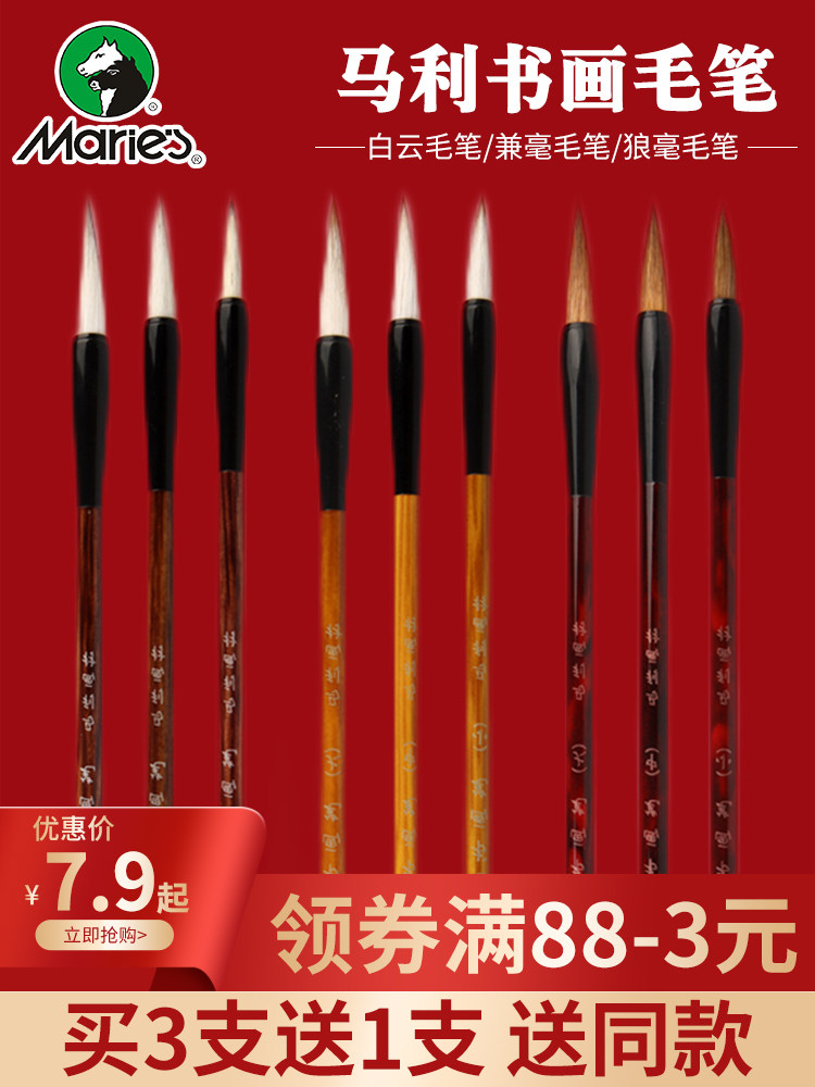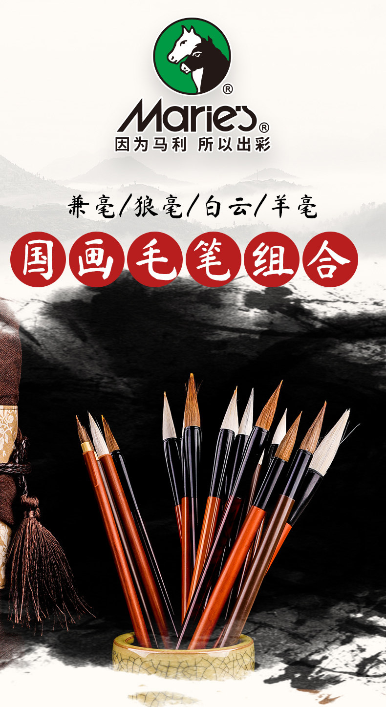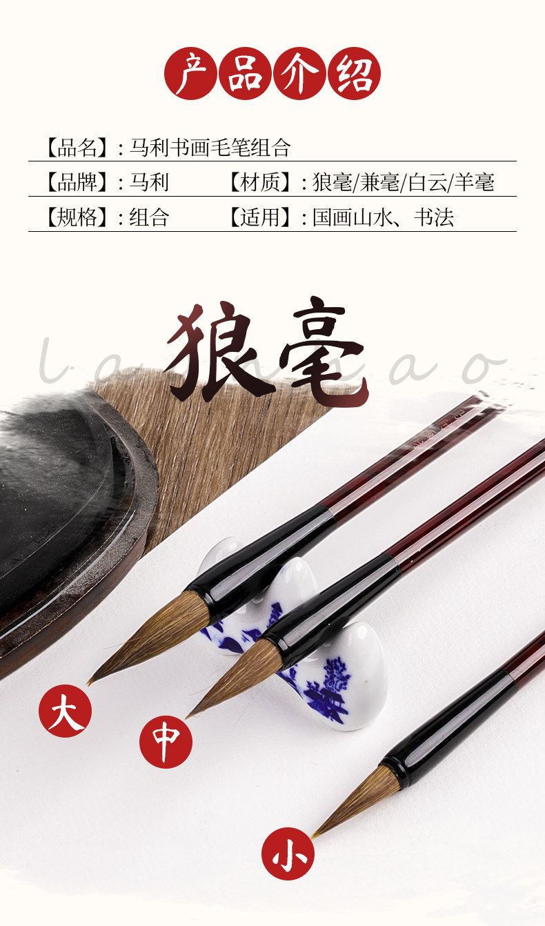 Mali Brand Brush Set for Traditional Chinese Painting and Calligraphy, Professional Use, Large, Medium, and Small Regular Script, Suitable for Elementary School Students, Children, Beginners, and Adults, Four Treasures of the Study, Includes Large, Medium, and Small White Cloud Brushes, Mixed Bristle and Wolf Hair Brushes, and Outline Brushes