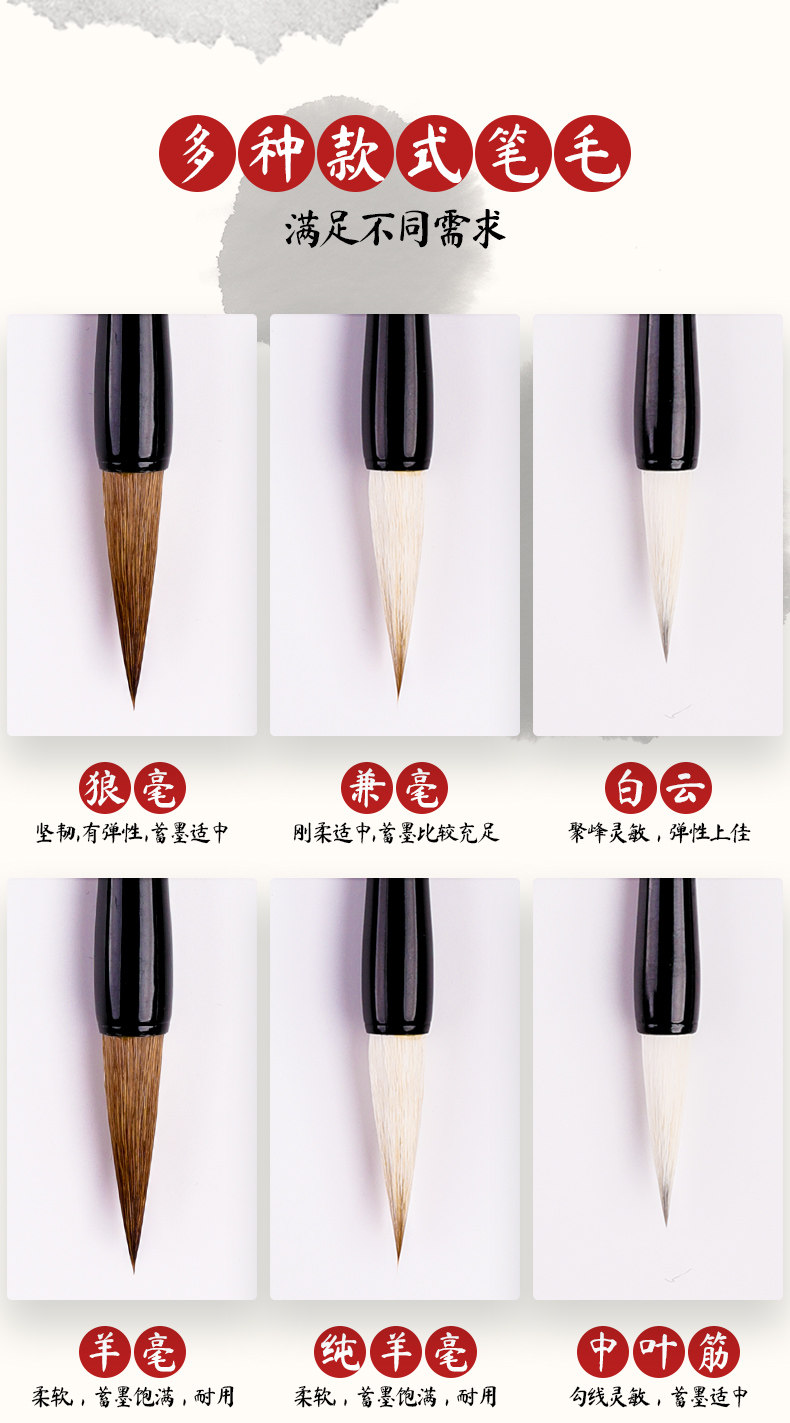 Color Classification Calligraphy Beginner Set (3-Piece Set),Calligraphy Beginner Set (Set of 4),Calligraphy Beginner Set (18-Piece Set),Calligraphy Beginner Set (33-Piece Set),Calligraphy and Painting Brush Set of 5 Pieces,Recommended by Chinese Painting Teacher (3 Practical Pieces) G1323,Baiyun Brush (3 Large, Medium and Small) G1333,Wolf Hair Brush (3 Large, Medium and Small) G1343,Mixed Hair Brush (3 Large, Medium and Small) G1353,3 Pieces of Calligraphy[Suitable for Beginners],3 Calligraphy Wolves[Suitable for Beginners],Baiyun Xiaokai[Single],Bai Yun Zhong Kai[1 Piece],Baiyun Regular Script[Single],Wolf Hair Small Regular Script[Single],Wolf Hair Medium Regular Script[Single],Langhao Regular Script[Single],Jianhao Small Regular Script[Single],Jianhao Zhongkai[Single],Large Regular Script[Single],Recommend 3[Brush + Marley Rice Paper + Felt + Ink Butterfly + Pen Holder + 100g Ink],3 White Clouds[Brush + Marley Rice Paper + Felt + Ink Butterfly + Pen Holder + 100g Ink],3 Wolf Hairs[Brush + Marley Rice Paper + Felt + Ink Butterfly + Pen Holder + 100g Ink],3 Pieces Each[Brush + Marley Rice Paper + Felt + Ink Butterfly + Pen Holder + 100g Ink],8K Calligraphy and Painting Rice Paper,4K Calligraphy and Painting Rice Paper
