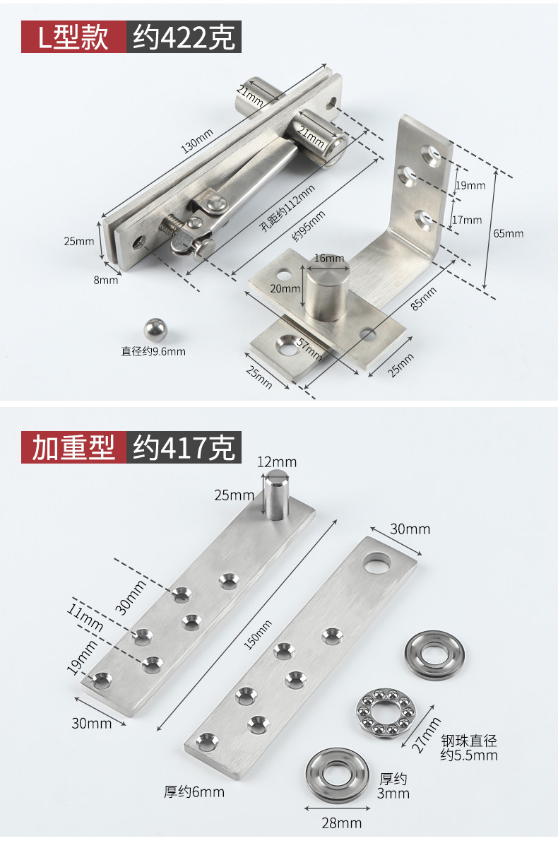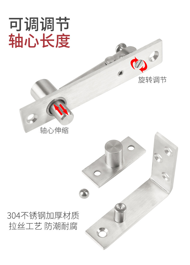 Heavy-duty 304 stainless steel 360-degree heaven and earth rotating axis wooden door upper and lower door axis hidden heaven and earth hinge invisible hinge