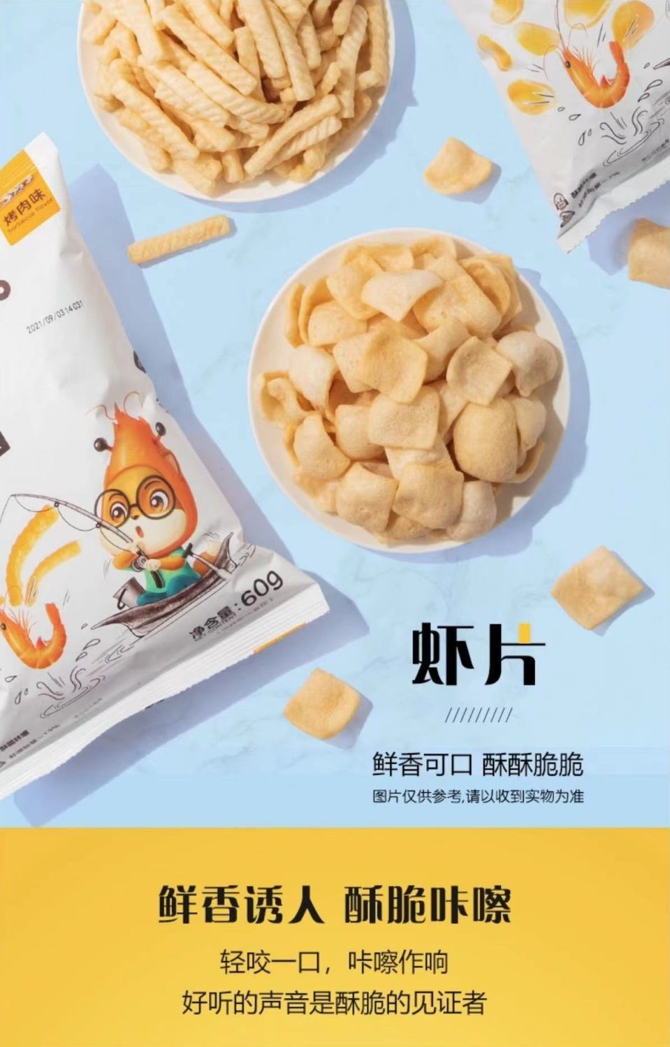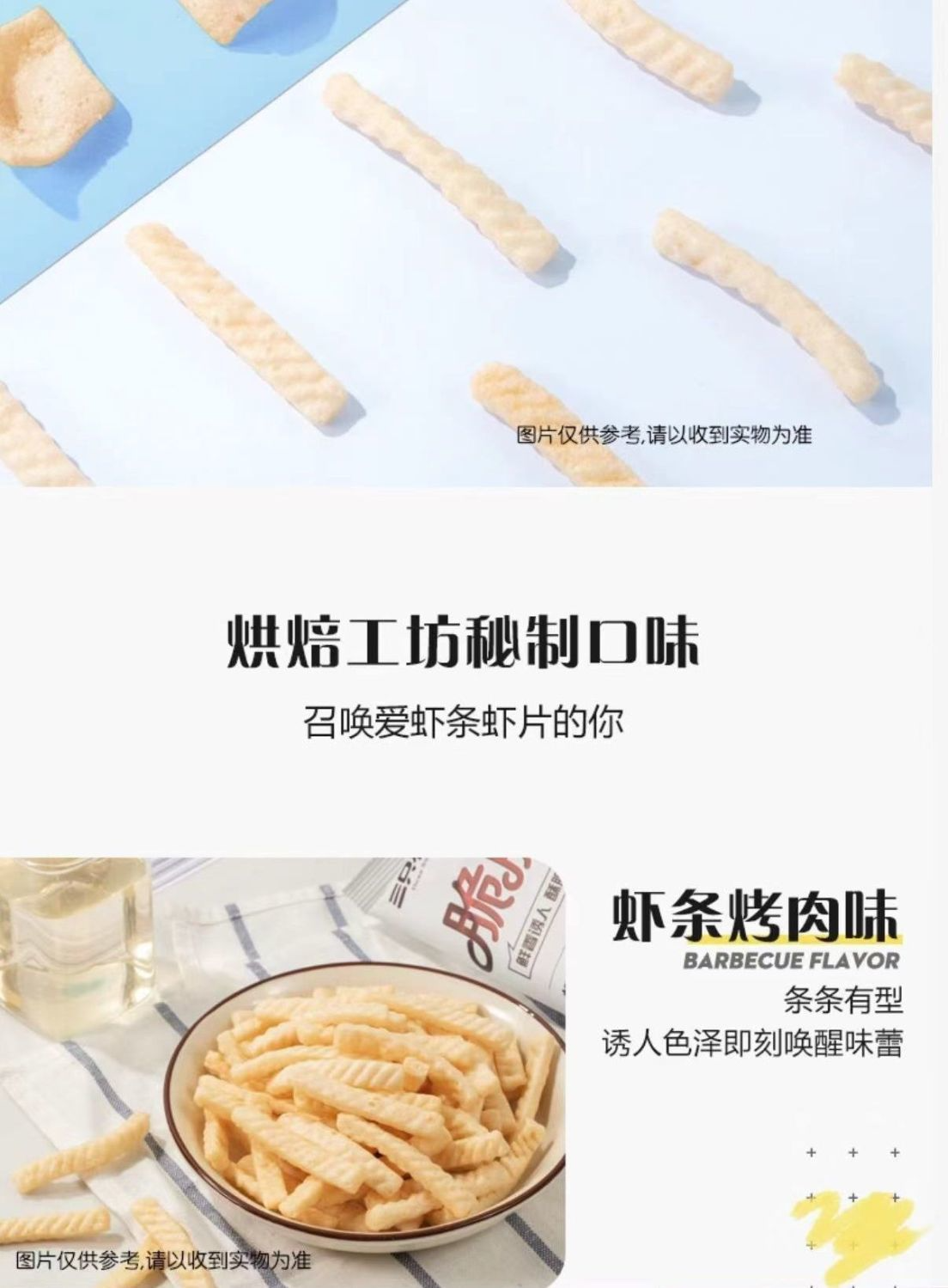 Three Squirrels Crispy Shrimp Sticks 60g 5 Bags Original Bbq Potato Chips Snacks 80S Nostalgic Snacks