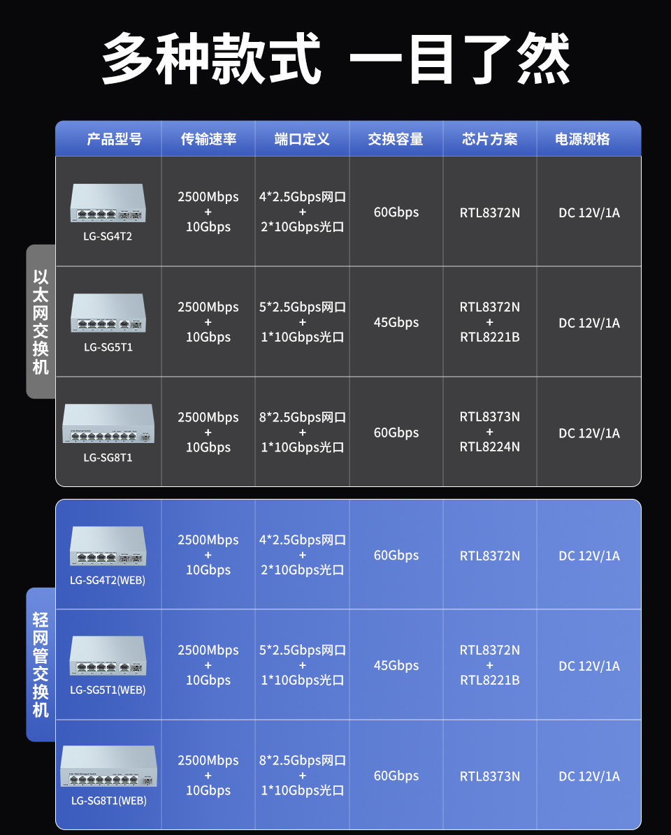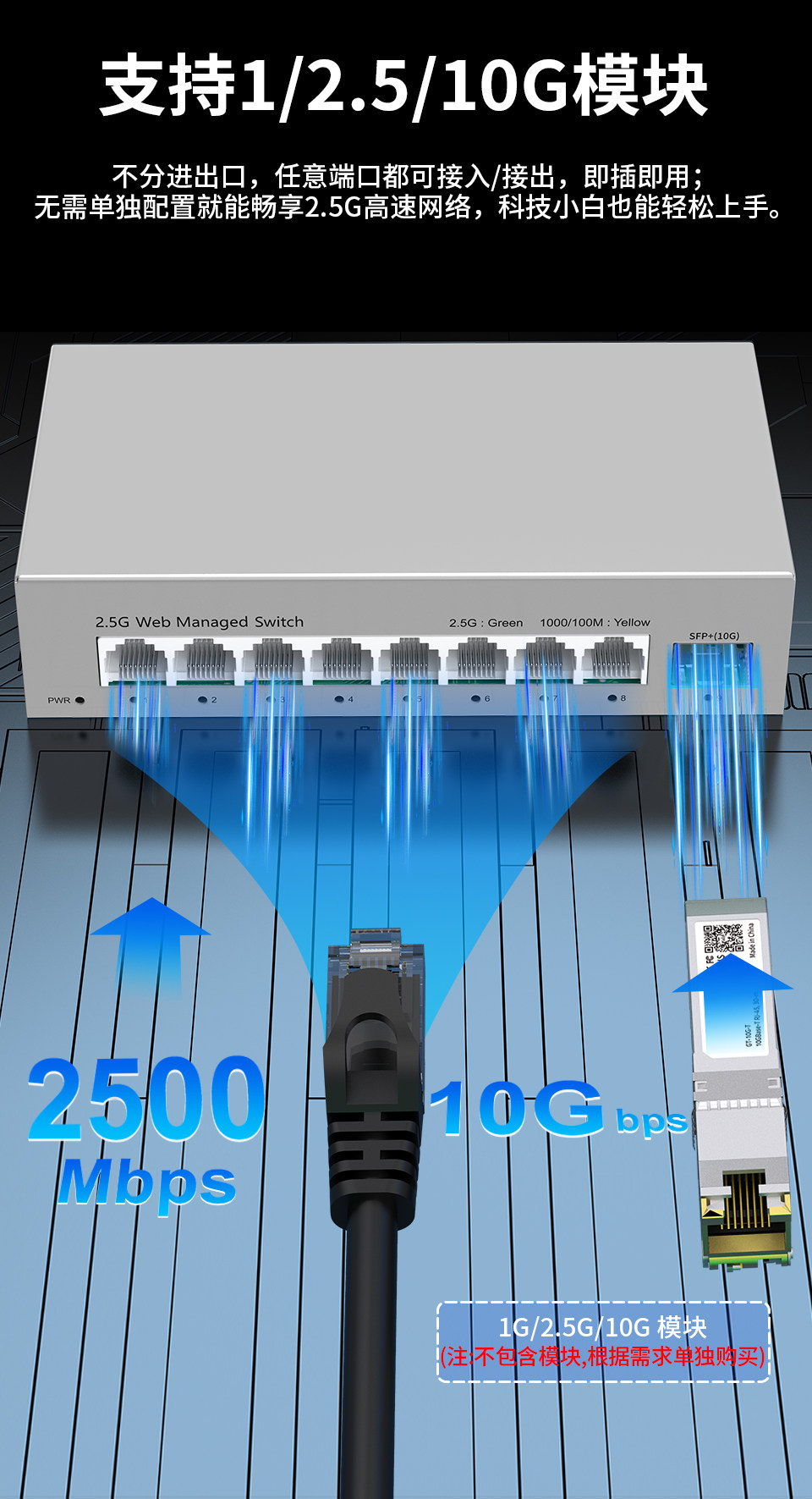 Color Classification [Web Management] 4-Port 2.5g+2 10g Optical Switches,【Web Management】5-Port 2.5g + 10g Sfp+ Switch,[Web Management] 8-Port 2.5G+10G Optical Switch,[Web Management] 8-Port 2.5g Poe+ 10g Optical 100W,[Web Management] 8-Port 2.5g Poe+ 10g Optical 150W,[Web Management] 8-Port 10g Optical Switch,[Web Management] 24-Port 2.5g+2 10g Optical Switches,【Web Management】2-Port Optical, 4-Port Ethernet 10 Gigabit Switch,[Web Management] 5-Port 10g Switch,【Web Management】7 Gigabit Ethernet Ports + Gigabit Sfp+ Switch,[Web Management] 8-Port 10g Switch,4-Port 2.5g+2 10g Optical Switches,4 2.5g Ports + 2 10g Optical Switches,5-Port 2.5G+10G Optical Switch,8-Port 2.5G+10G Optical Switch,8 2.5g Ports + 10g Optical Switch,8-Port 2.5G+20G Optical Switch,4 2.5g Poe Ports + 2.5g Network Port Switch,8-Port 2.5g Poe+ 10g Optical Switch,8-Port 10g Optical Switch,8 10g Electrical Port Switches,16 2.5g Electrical Ports + 2 10g Sfp+ Optical Ports,24-Port 2.5g+2 10g Optical Switches,48 2.5g Switches + 4 10G/25G Optical Ports + 2 40g Qsfp+