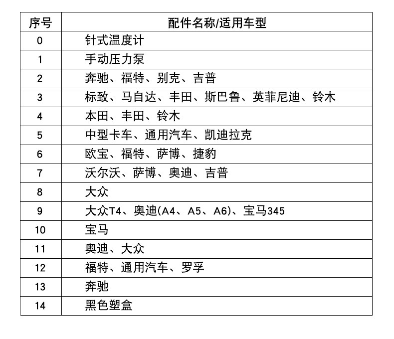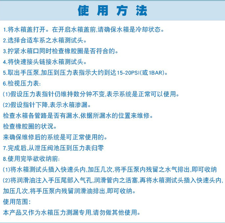 Model 14-Piece Car Radiator Pressure Tester Kit
