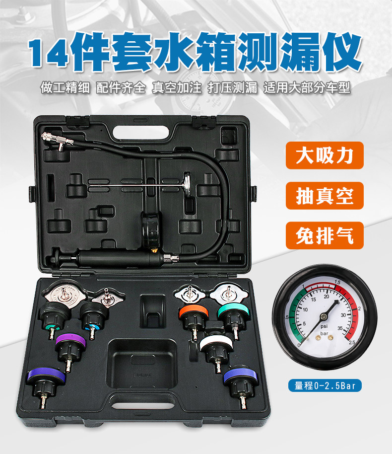 14-Piece Car Water Tank Leak Detector Water Tank Inflator Pressure Gauge Water Tank Detector Cooling System Pressure Relief Tool