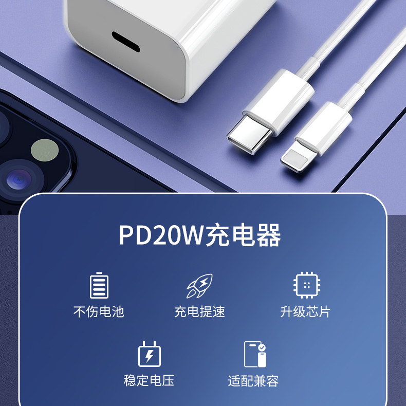 Suitable for iPhone 13 Charger Head 20W Data Cable Pg12 Fast Charging Pd Apple 11 Flash Charging 7/8Plus One Set Xr/Xsmax Mobile Phone iPad Fast 30 Plug Promax Quick Charge