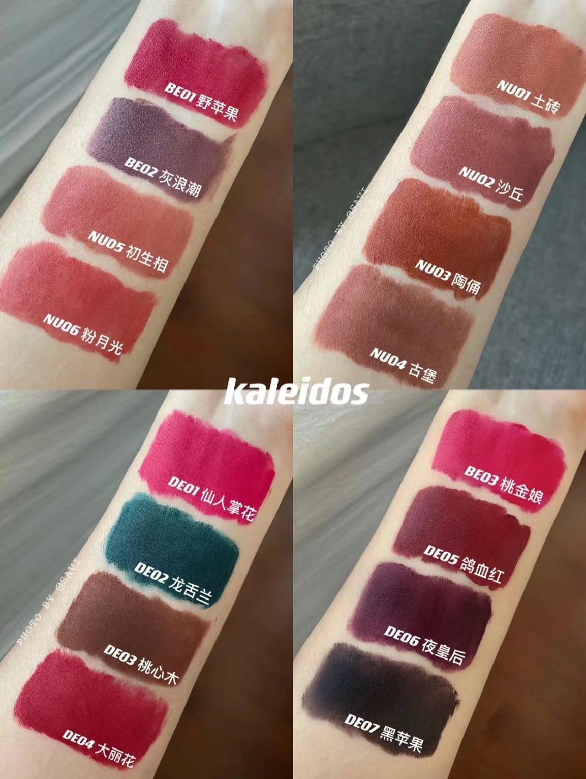 Kaleidos Kaleidoscope Nu02 Dune Nu05 Newborn Phase European and American Matte Non-Stick Lipstick Lip Mud De0605