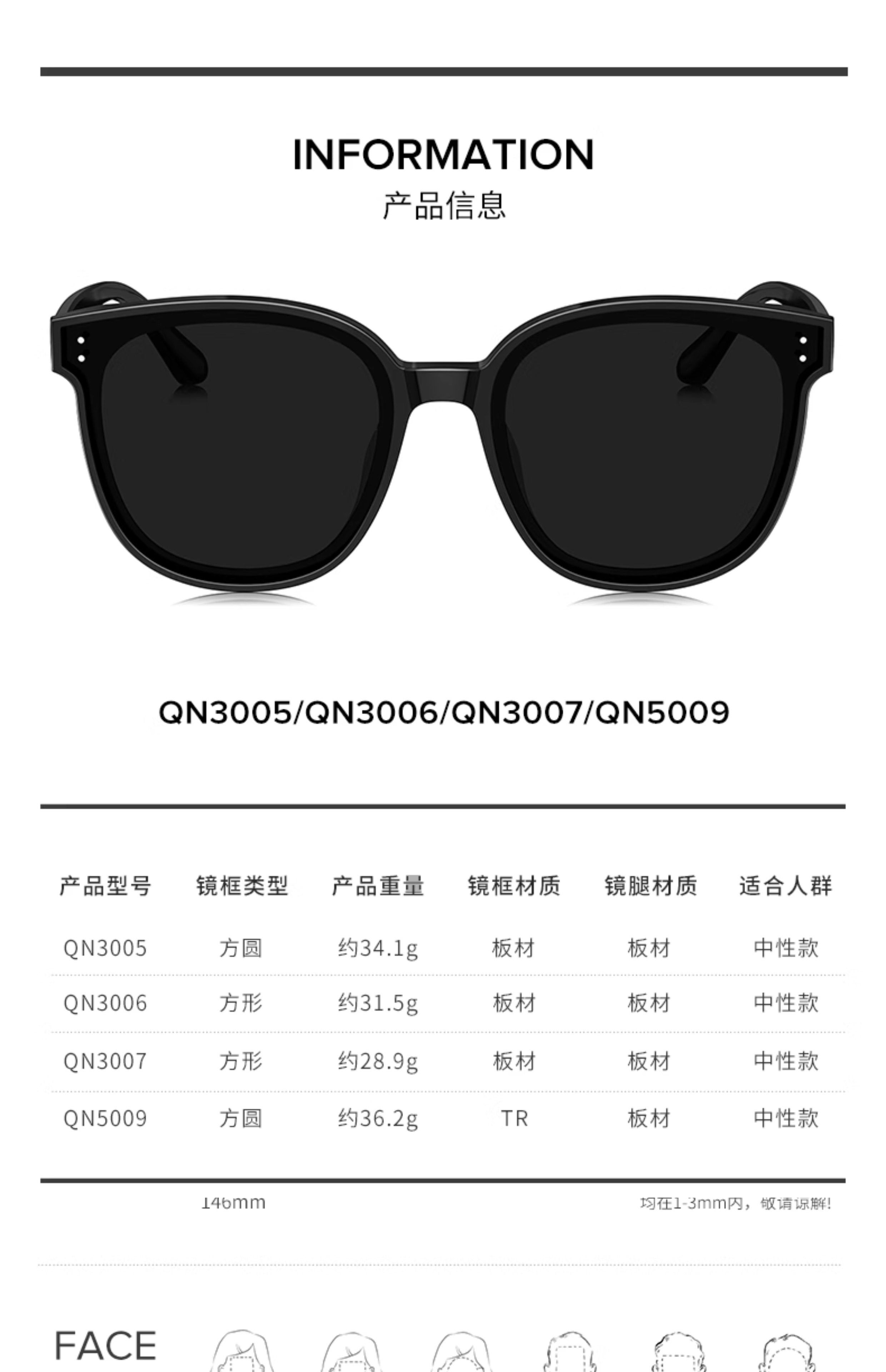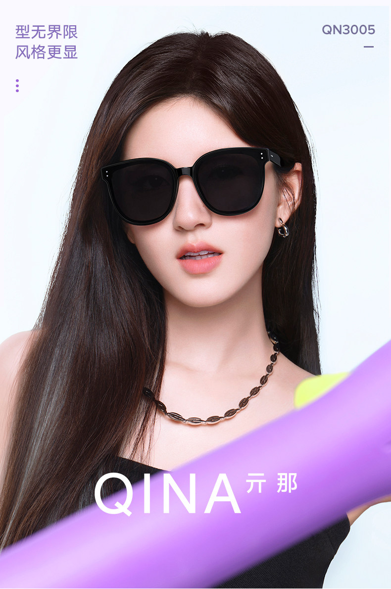 QINA Qina Zhao Lusi same style black super sunglasses women's sun protection UV sunglasses men's QN3005