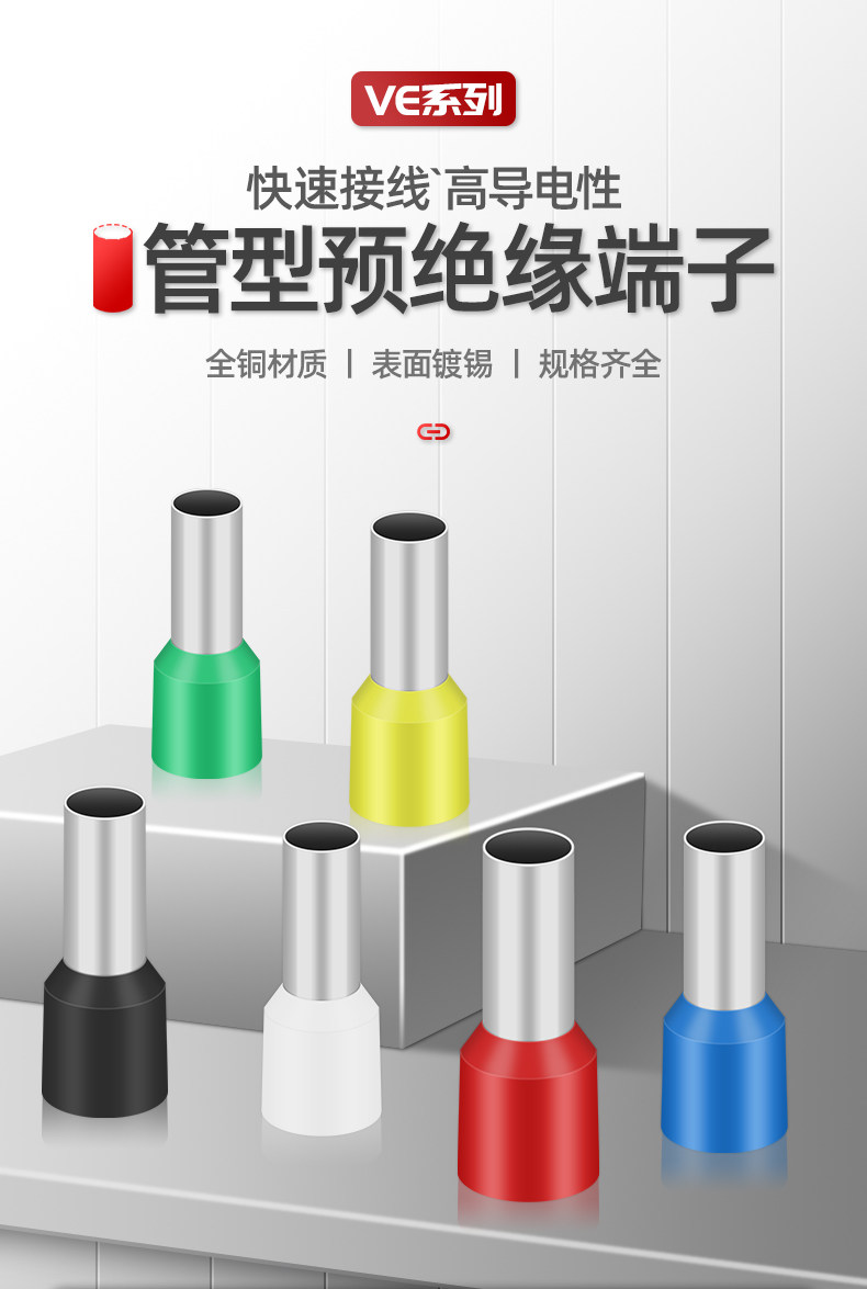 Ve Tube-Type Pin-Type Pre-Insulated Crimping Pliers Terminal Block Copper Tube Copper Sleeve Type Sheathed Terminal Block Pin