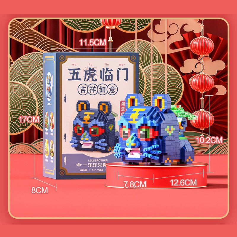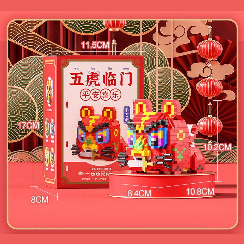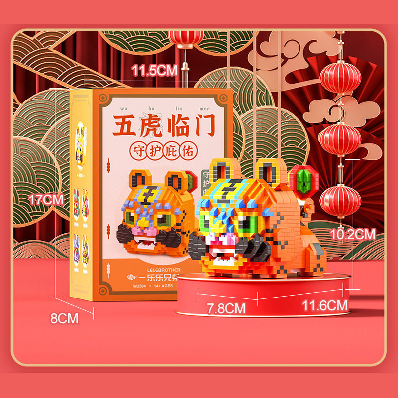 Tiny Particle Zodiac Year of the Tiger Building Blocks Five Tigers at the Door New Year Gift Children's Educational Assembly Toy Good Luck and Prosperity