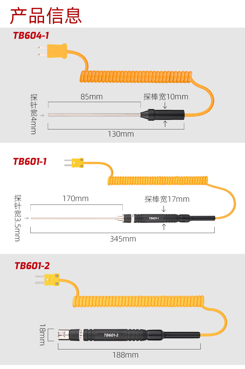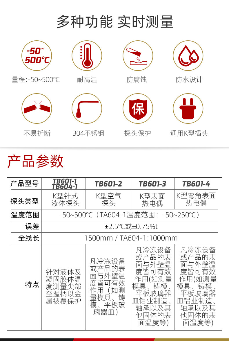 Tasi Tb601 Series High-Precision Contact-Type K-Type Thermocouple Temperature Probe Metal Sensor