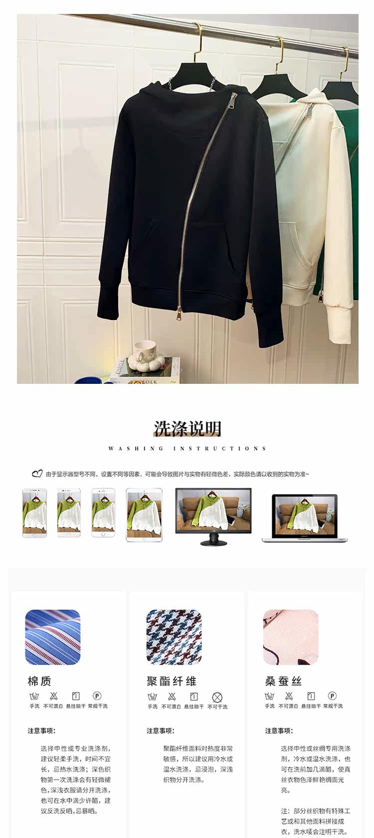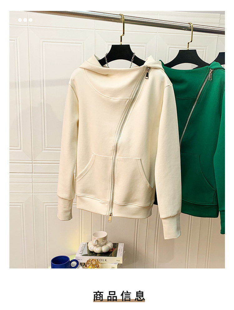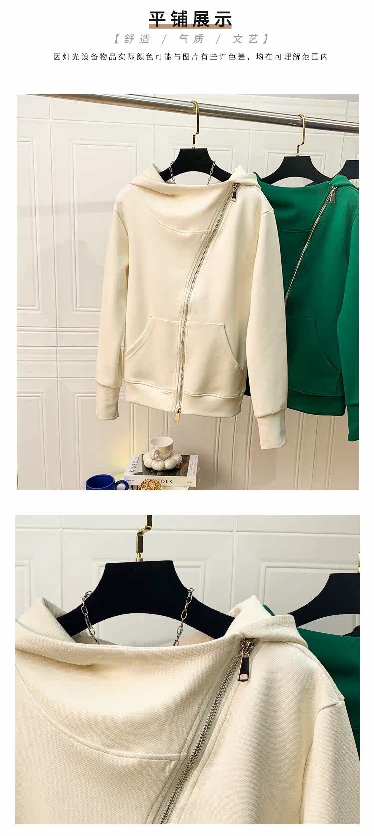 Designer-Style Sweatshirt for Women, 2023 Spring and Autumn New European Style, Slim Fit, Irregular Zipper, Hooded Cardigan Jacket