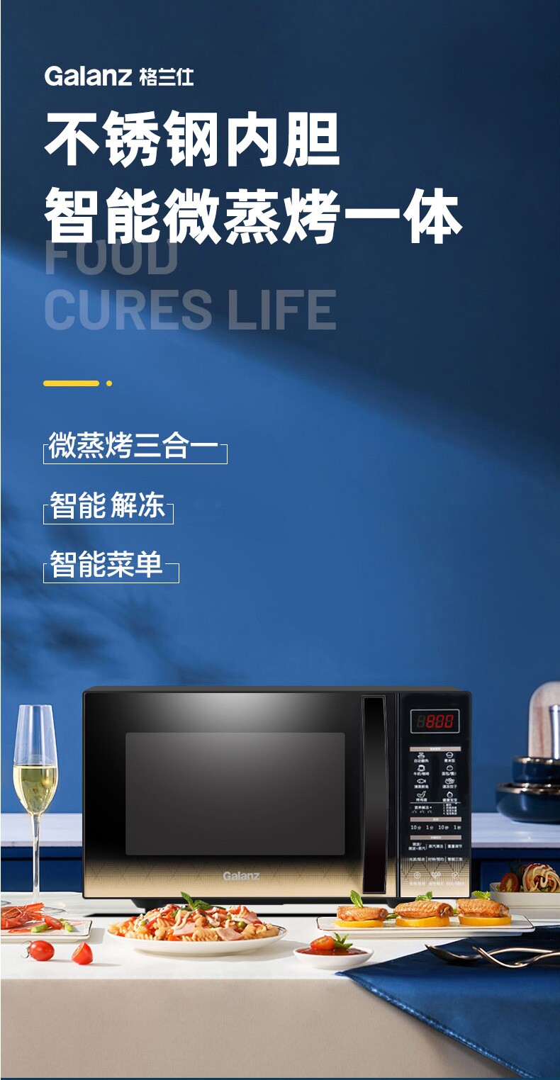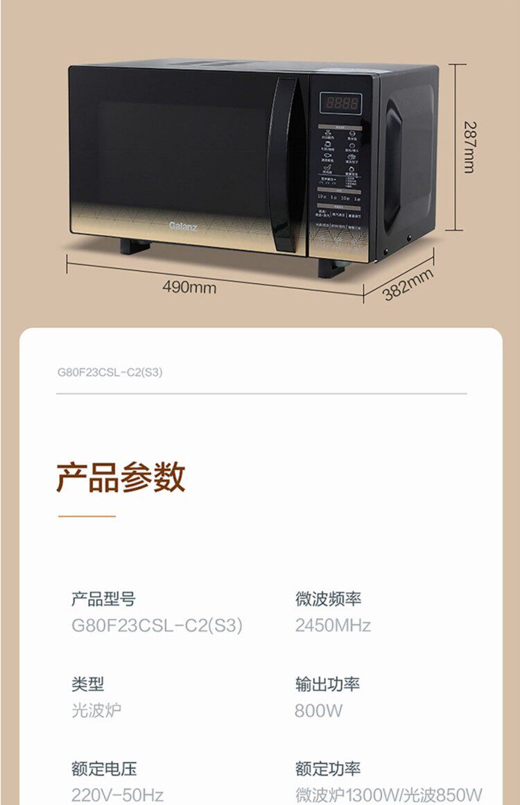 Galanz G80F23Csl-C2(S5) Microwave Oven for Home Use, Intelligent Light Wave Oven with Stainless Steel Cavity, Micro-Steaming and Baking Integrated