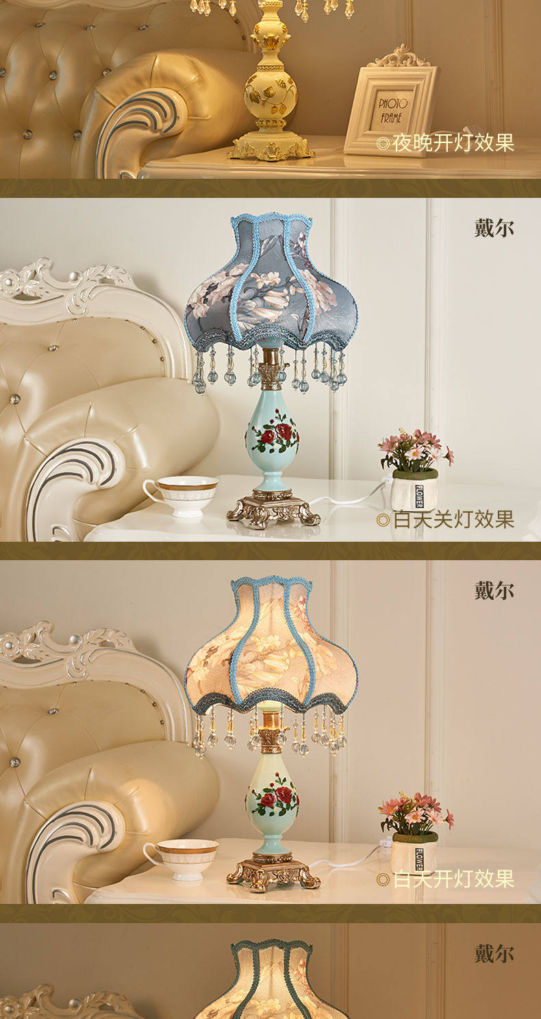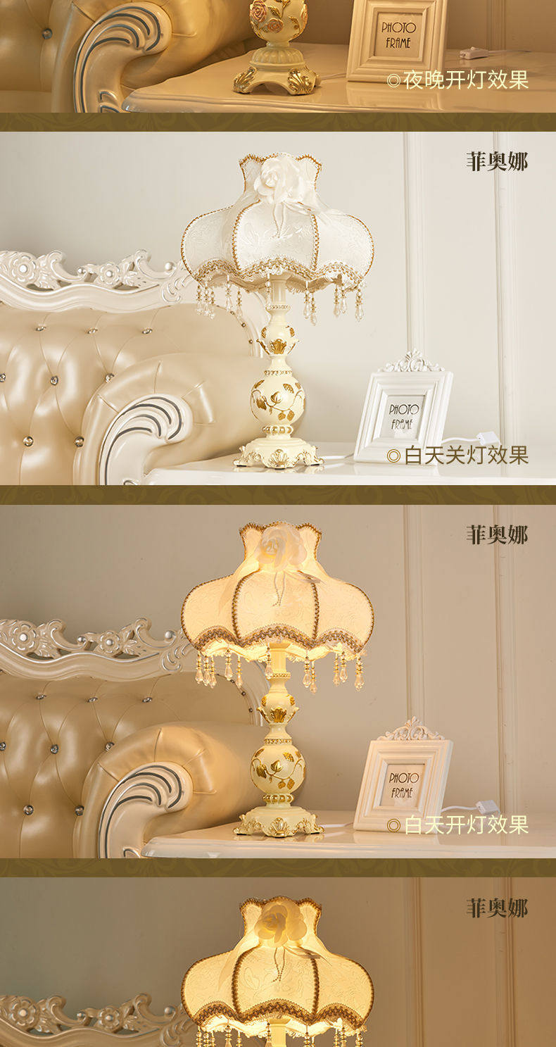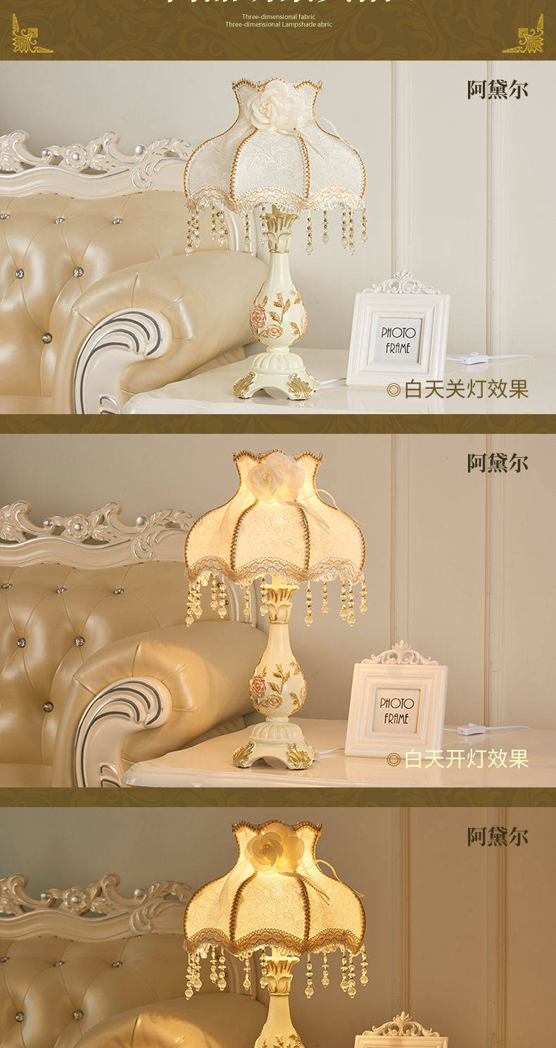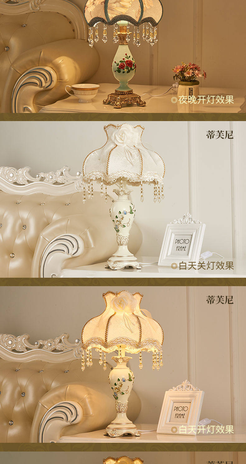 Retro style bedroom table lamp, warm and romantic light, wedding room, girl Internet celebrity, European style bedside