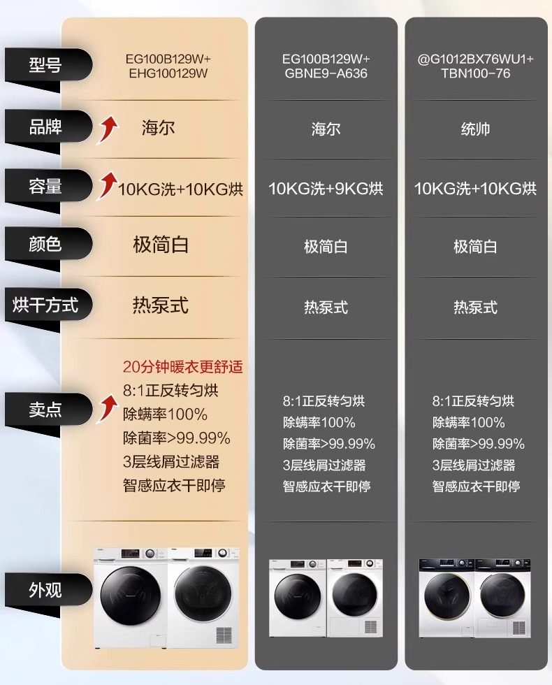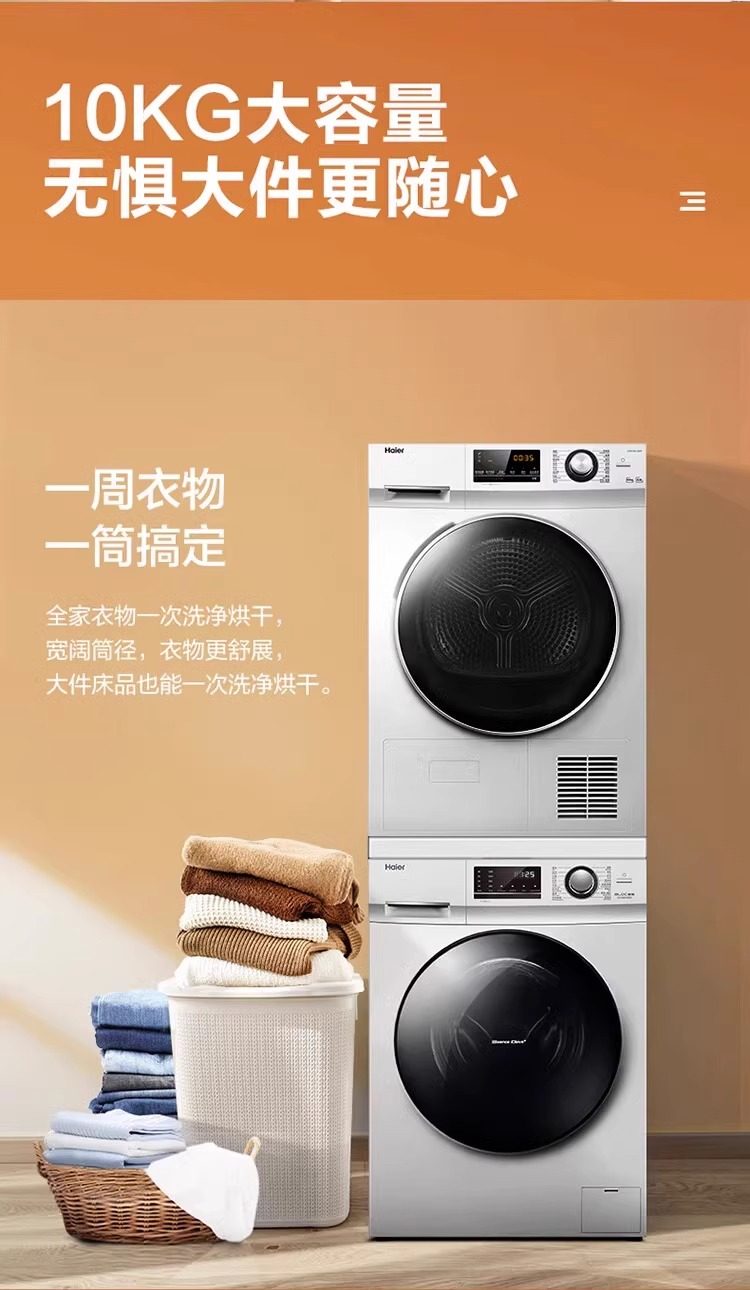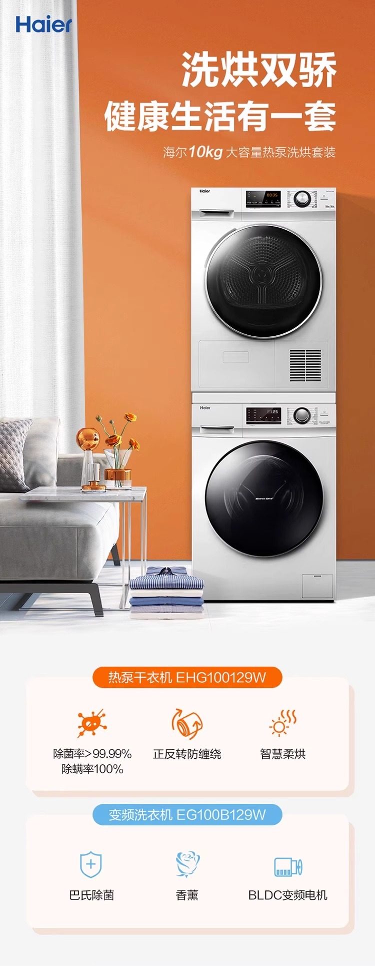 Haier Eg100B129W+Ehg100129W Heat Pump Washing and Drying Set Fully Automatic Drum Washing Machine