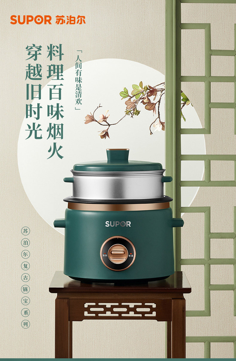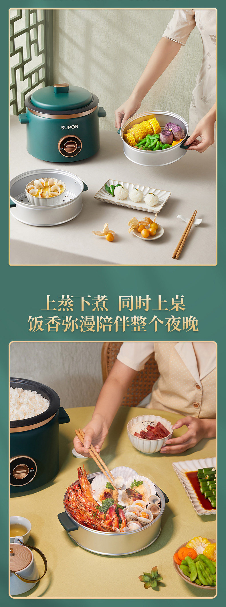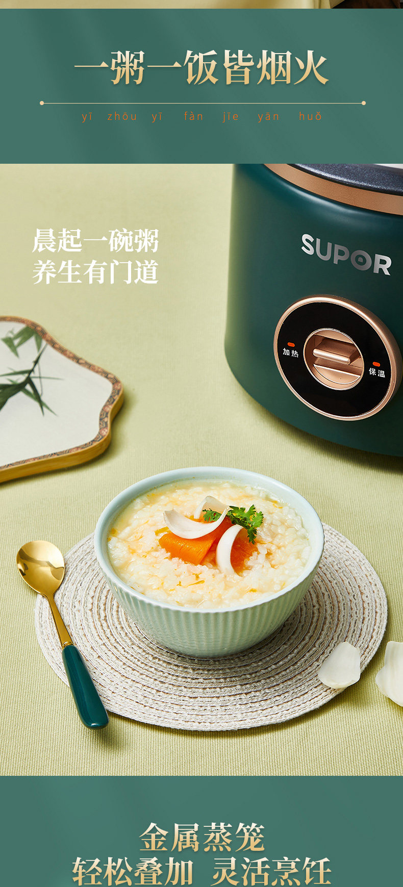 Supor Electric Rice Cooker Mini Rice Cooker Multifunctional Household Appliance for 1-2 People Small Size for 1-3 People Can Steam and Cook