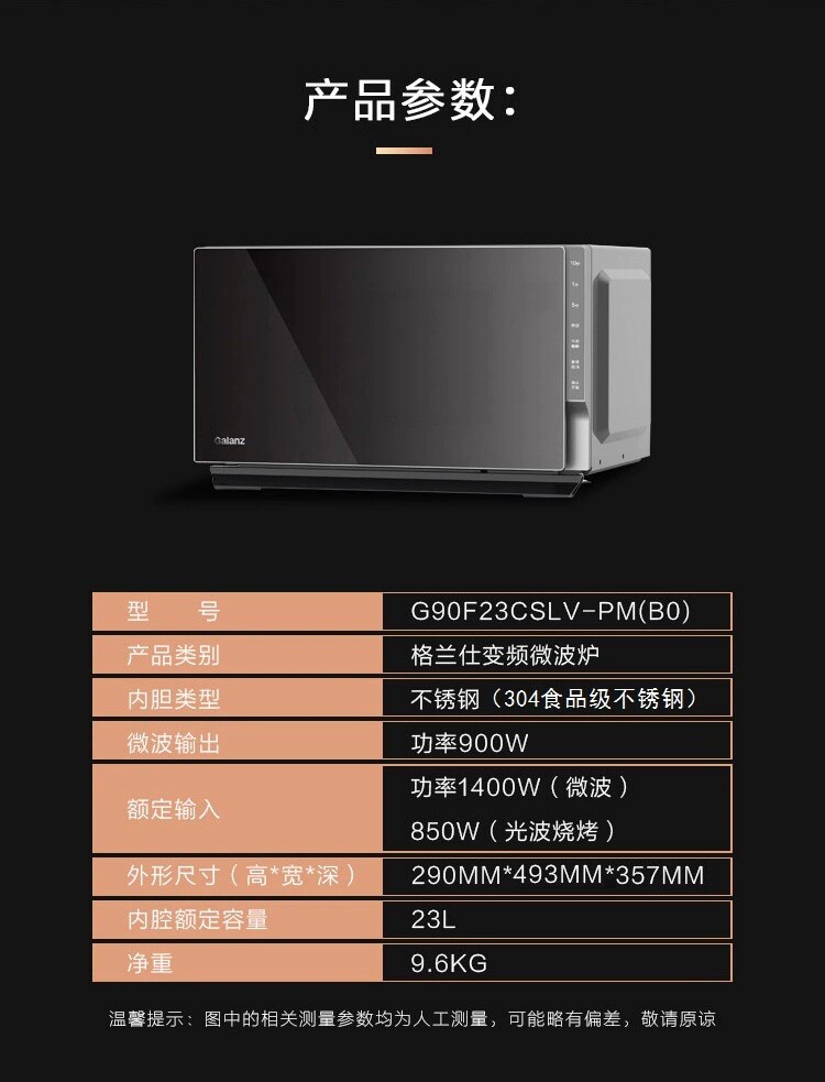 Galanz G90F23Cslv-Pm(B0) Household Inverter Stainless Steel Microwave Oven, Micro-Steaming and Baking All-In-One Machine, New Product
