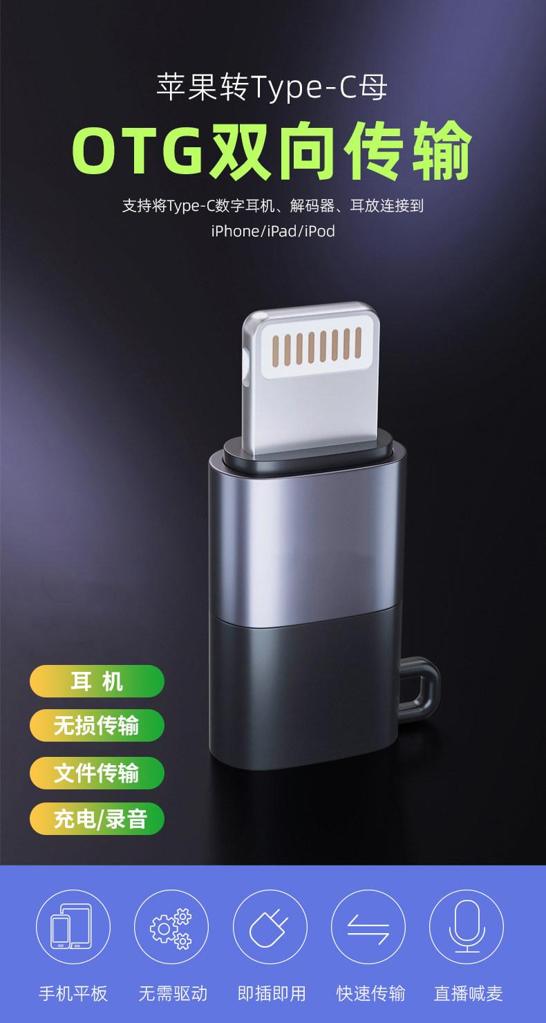Color Classification Apple Male to Typec Female Interface [Headphone_Charging_Data Transmission Recording]