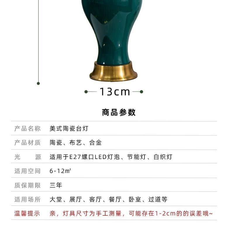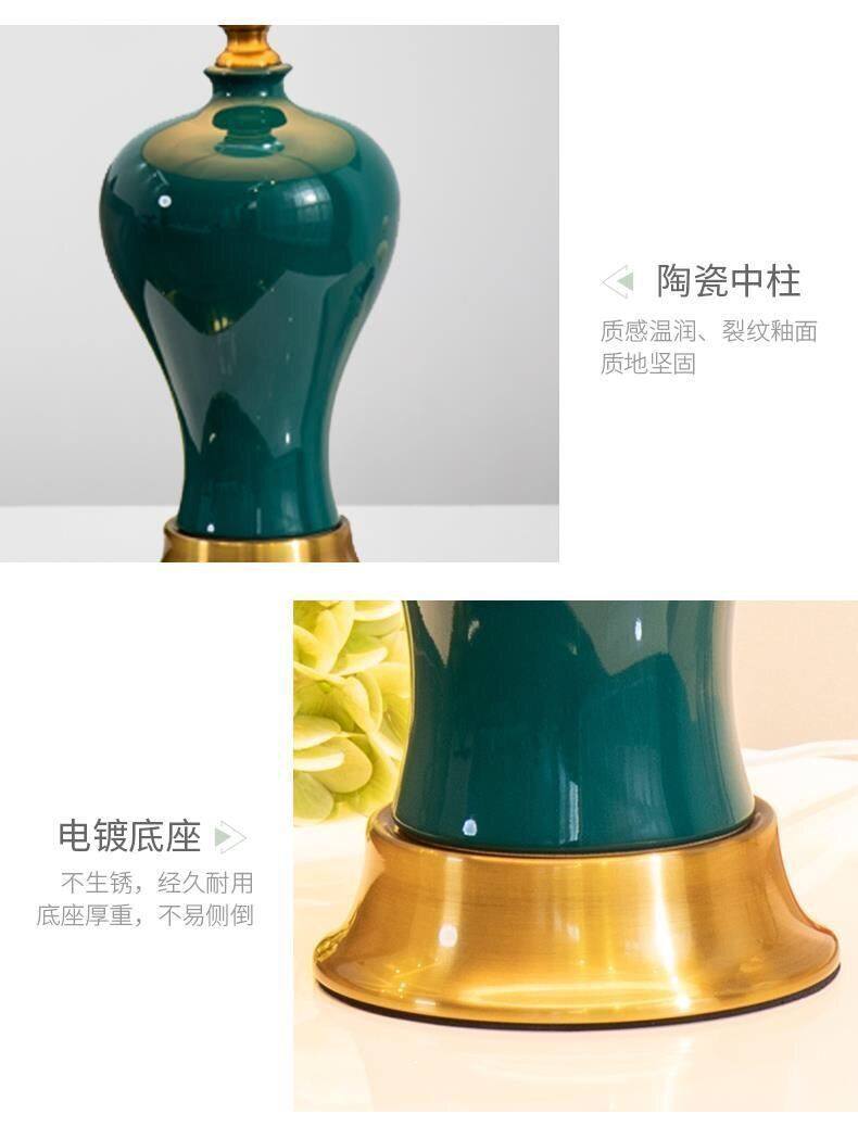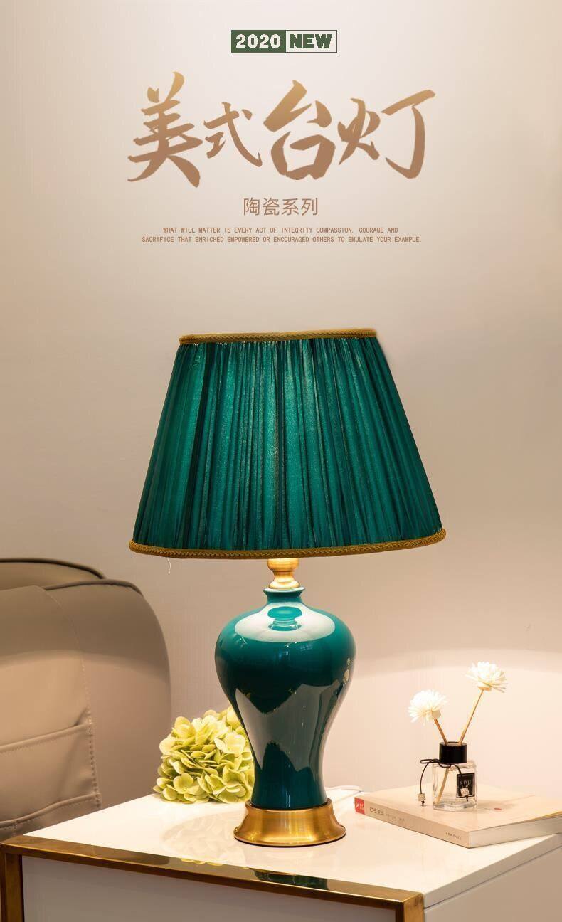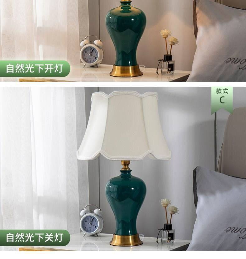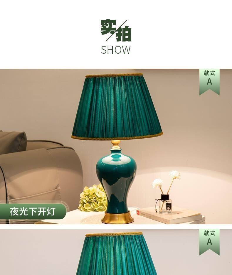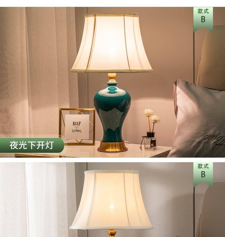 Ceramic Table Lamp for Bedroom, Home Use, American-Style Porcelain Table Lamp, European-Style Table Lamp, Living Room Decoration, New Chinese-Style