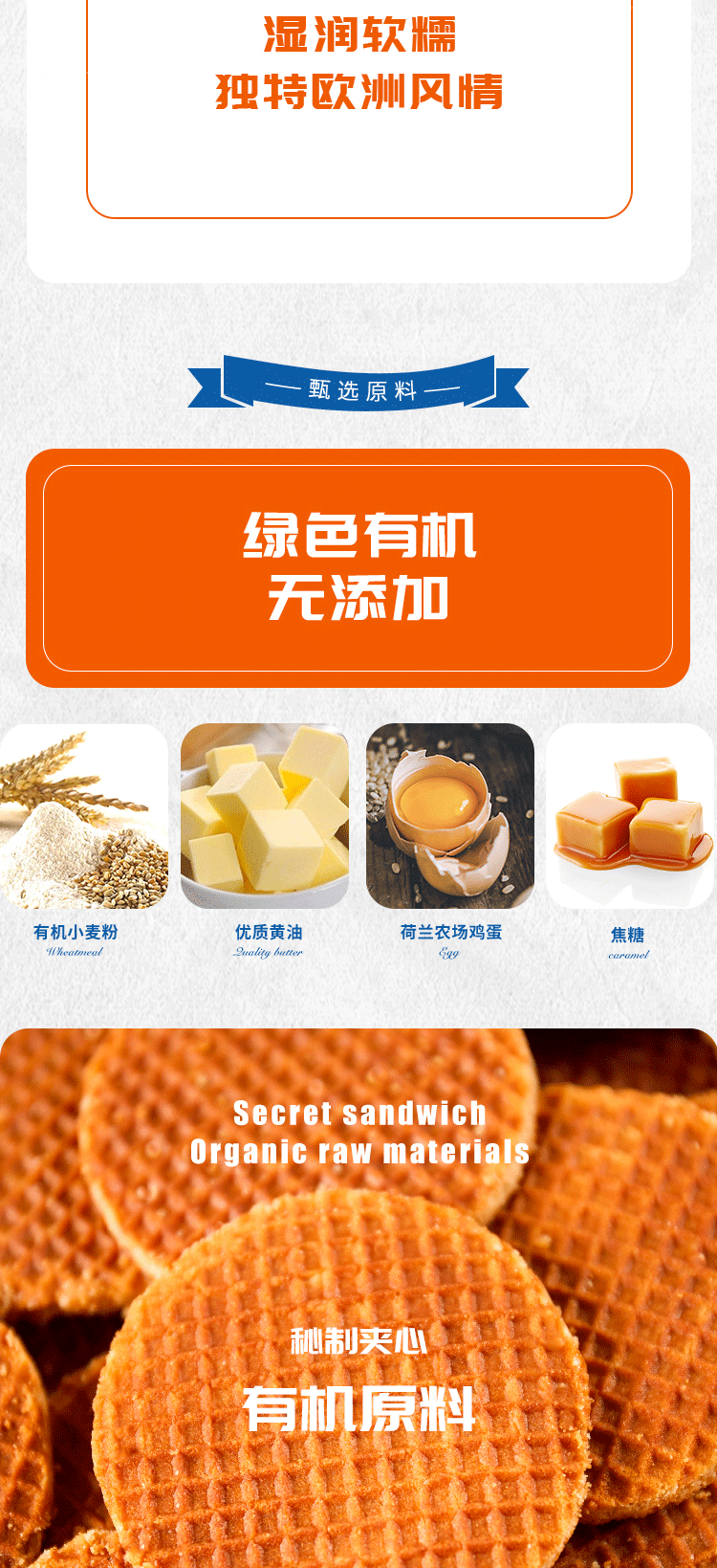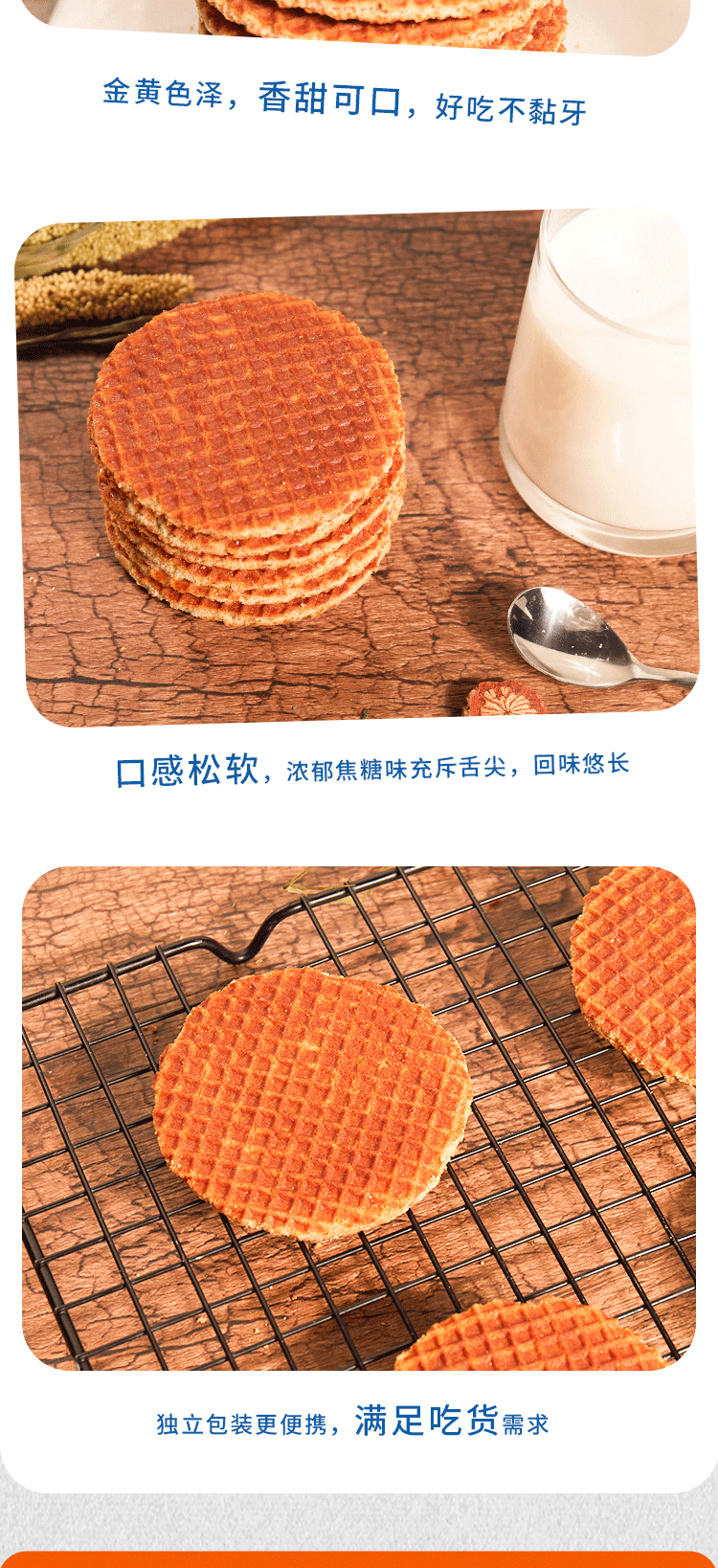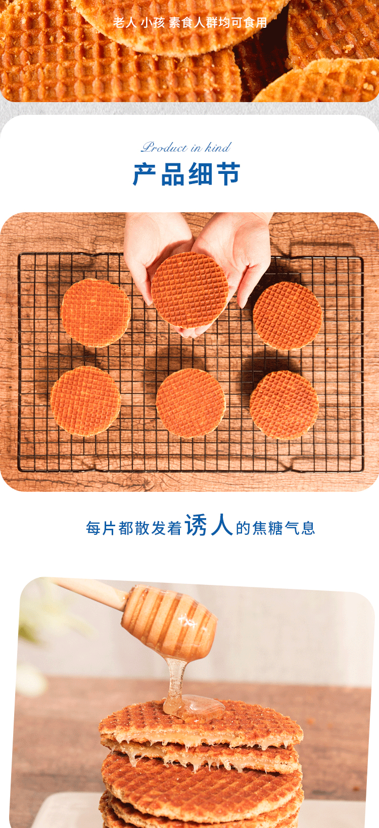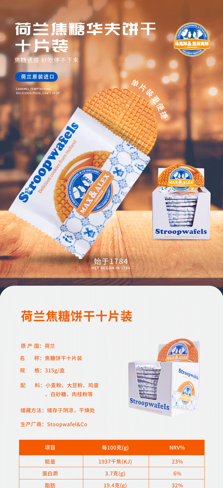 Imported from the Netherlands, caramel sandwich waffle round honey biscuits 315g 10 pieces single snack Max Alex