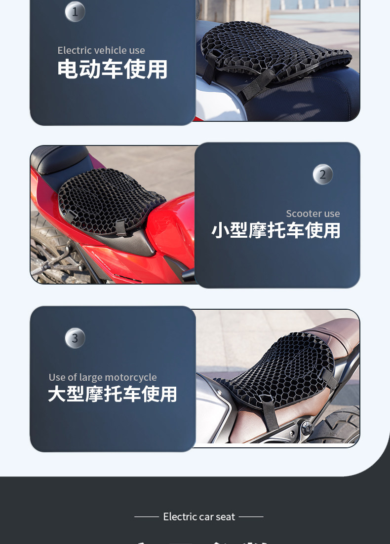 Sort by color Ready in stock. Recommended by the store manager. Free seat cushion protective cover.,Gel honeycomb seat cushion cover for motorcycles and electric vehicles,Upgraded 4D more elastic gel cushion (recommended by the store manager),Gel honeycomb seat cushion cover + sun protection sleeves, universal for motorcycles and electric vehicles,Gel honeycomb seat cushion cover + summer ice-feel seat cover, universal for motorcycles and electric vehicles,Gel honeycomb seat cushion + summer ice-feel seat cover + sun protection sleeves, universal for motorcycles and electric vehicles,Gel honeycomb seat cushion cover + winter warm velvet cover, universal for motorcycles and electric vehicles,Massage particle silicone cushion + sun protection sleeves, universal for motorcycles and electric vehicles