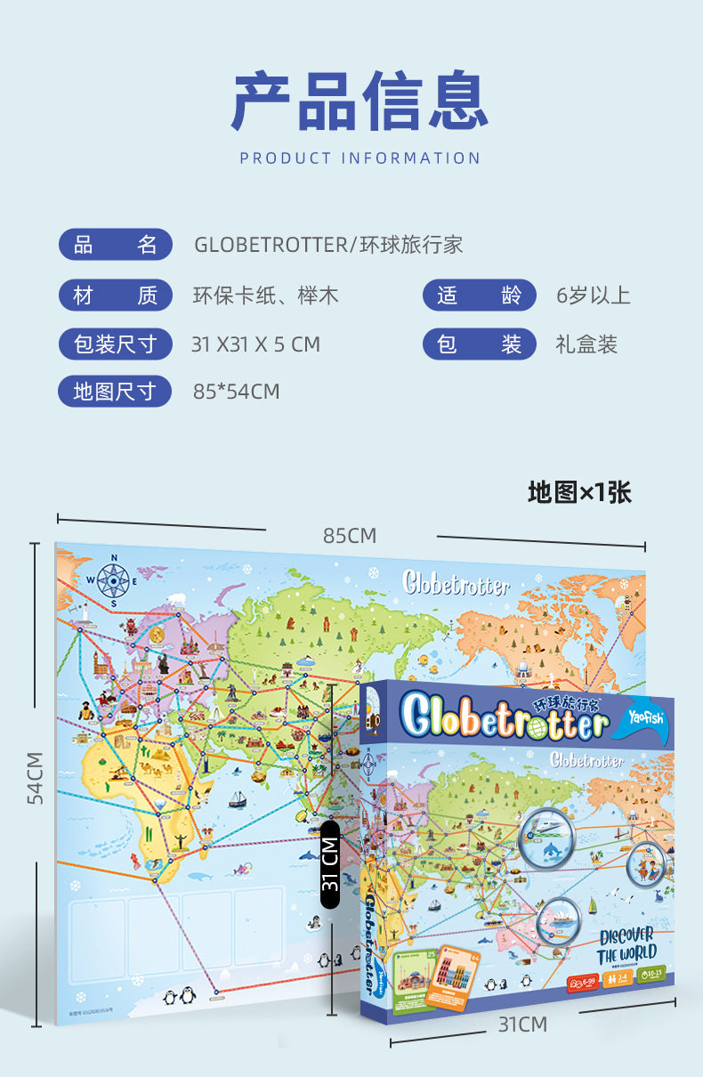 Game Continent Yaofish Global Traveler World Tour Children's Thinking Game: Journey through Mountains and Rivers Board Game Toy