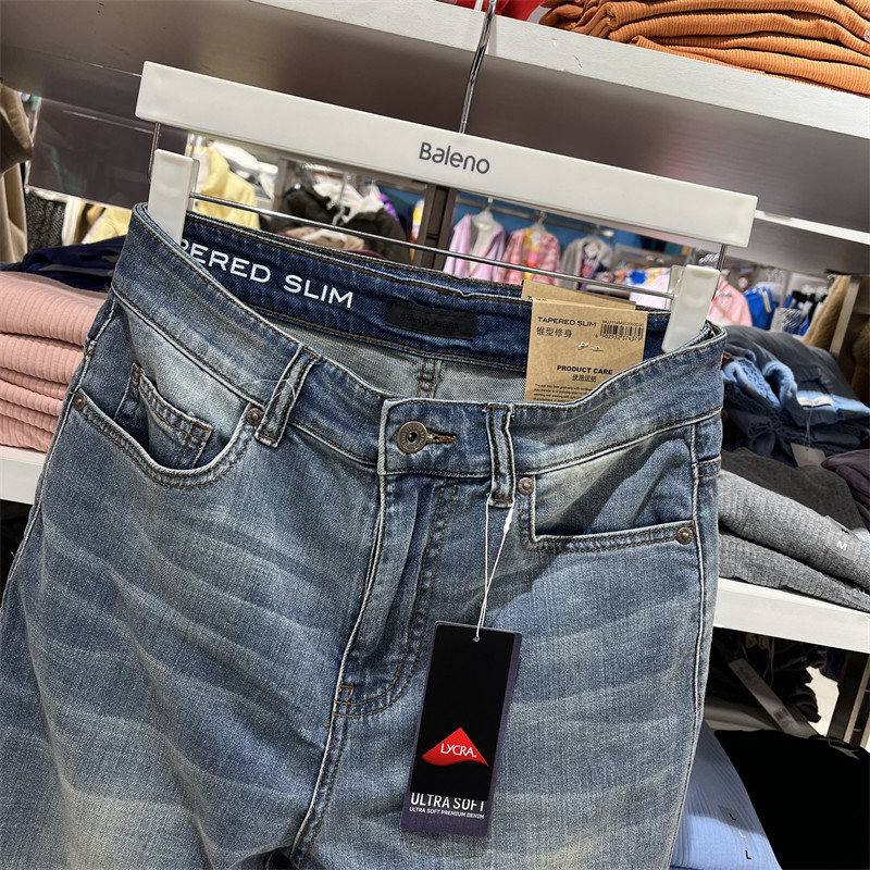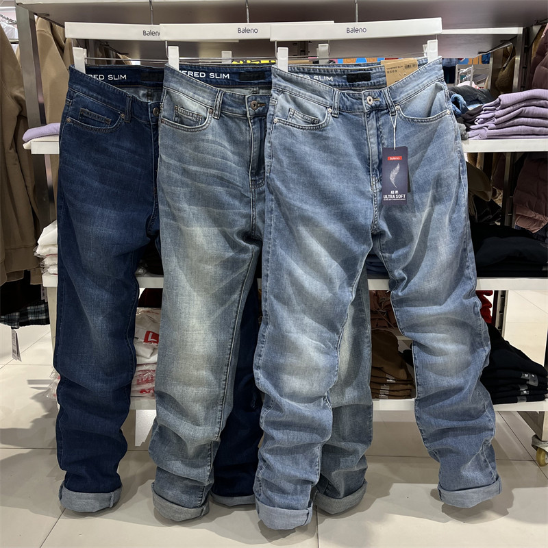 Baleno 2022 spring and summer new style men's Hong Kong style stretch slim washed denim casual trousers 8822114M002