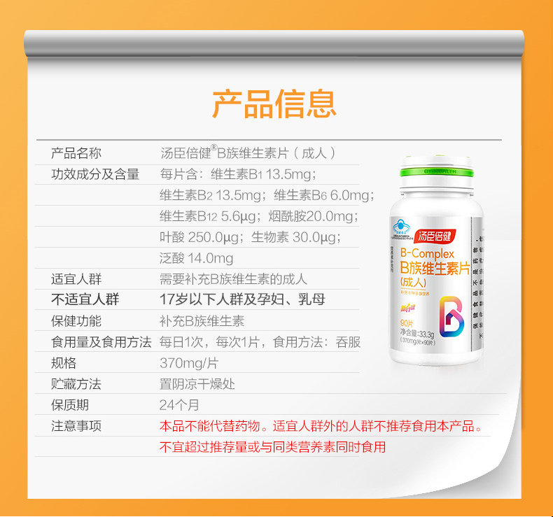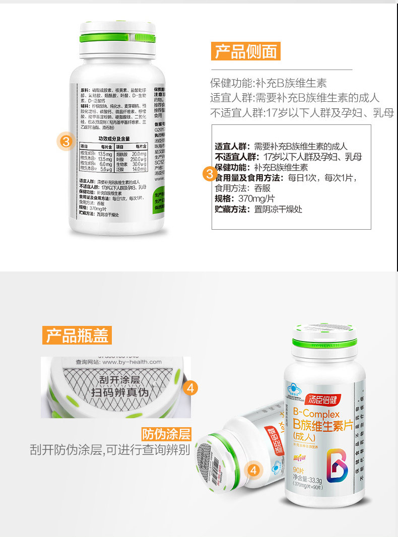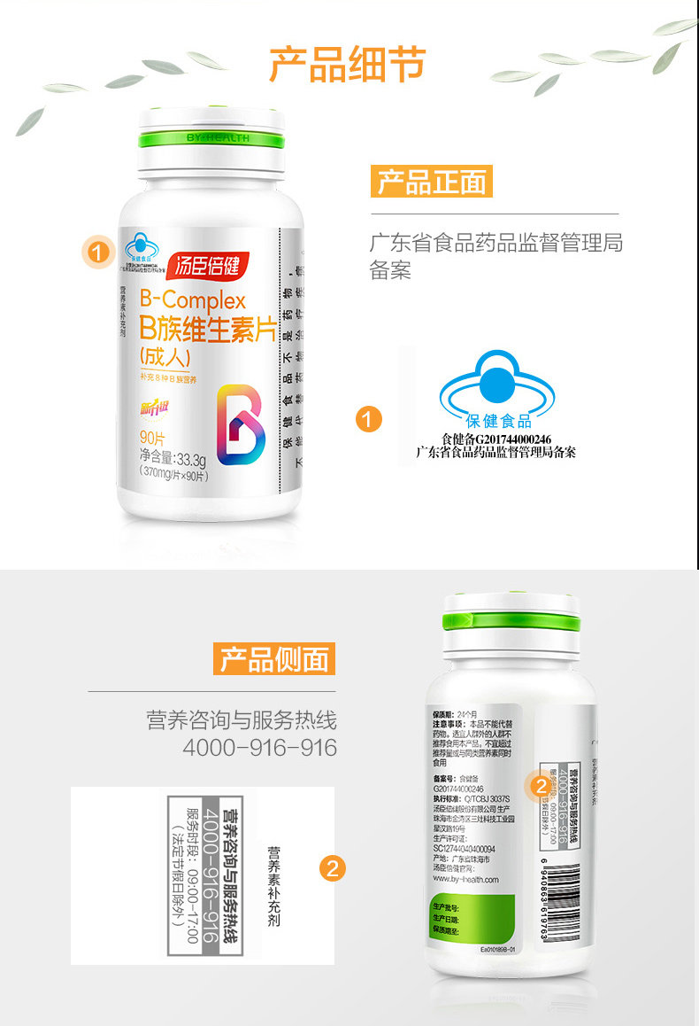 A total of 60 tablets Tomson By-Health vitamin B complex 370mg/tablet*30 tablets 2 bottles B1B2B6B12 adult B complex VB