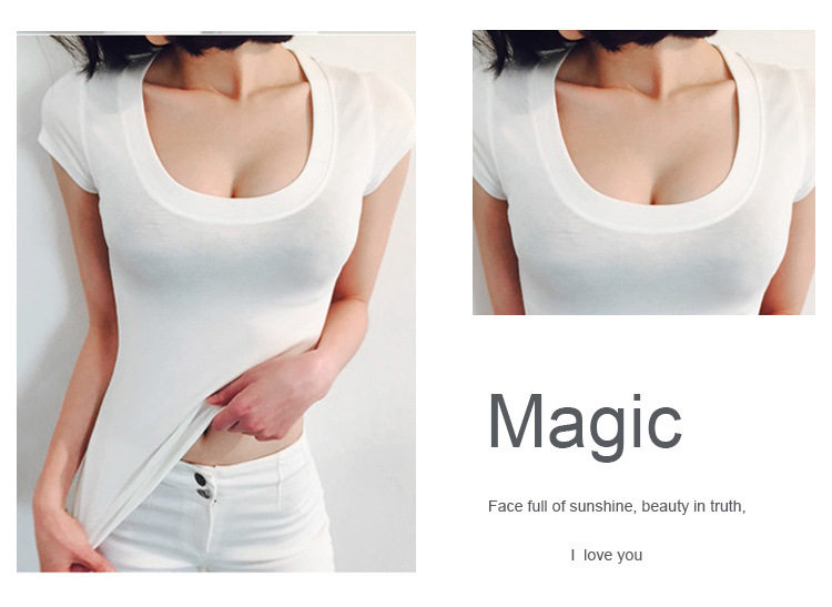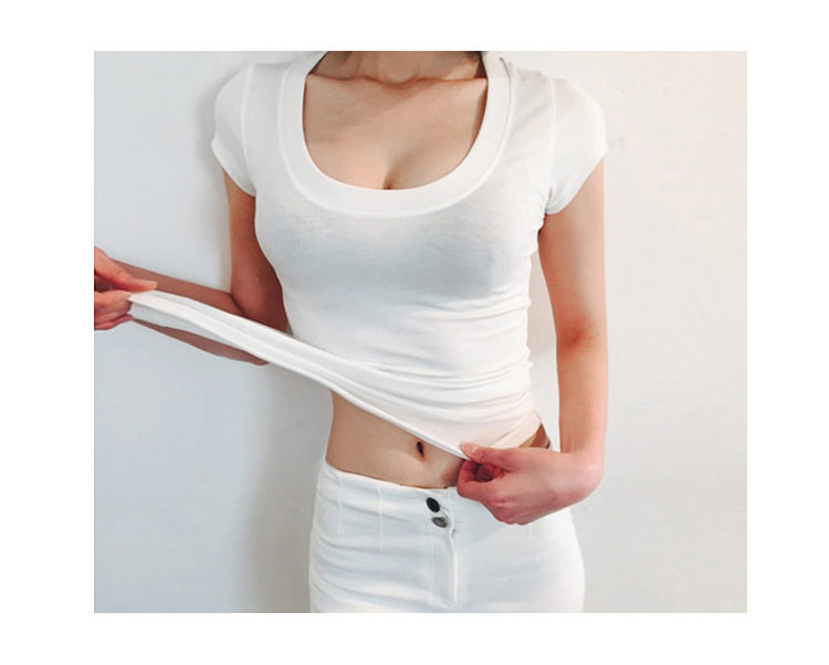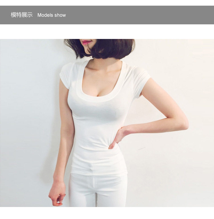 2025 Women's Summer Short-Sleeve Slim Fit Low-Cut U-Neck T-Shirt, Base Layer Top That Enhances Bust, Sexy and Stretchy Top