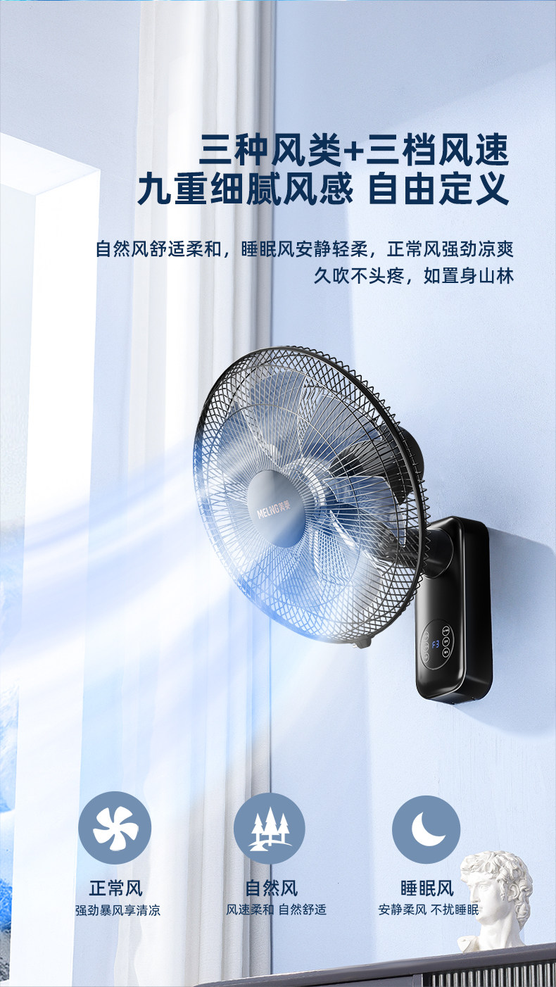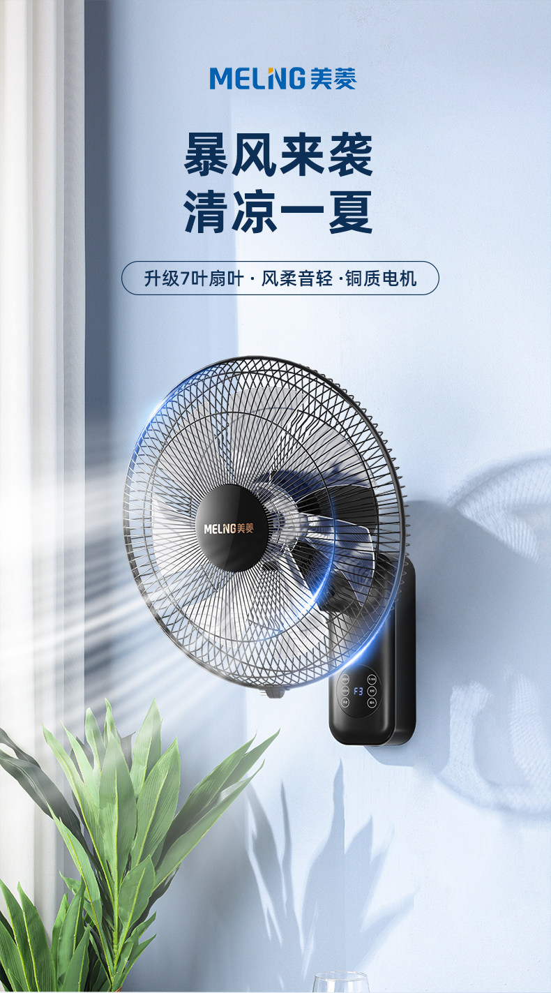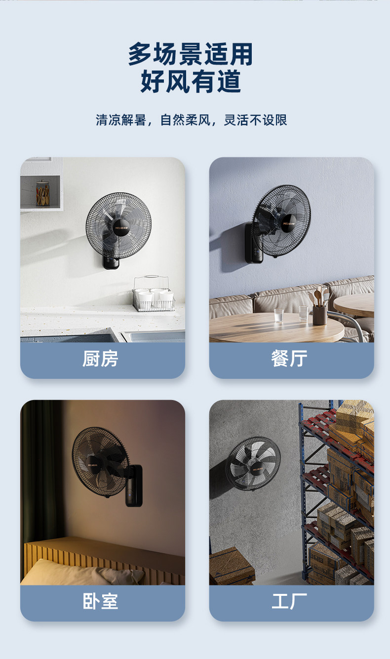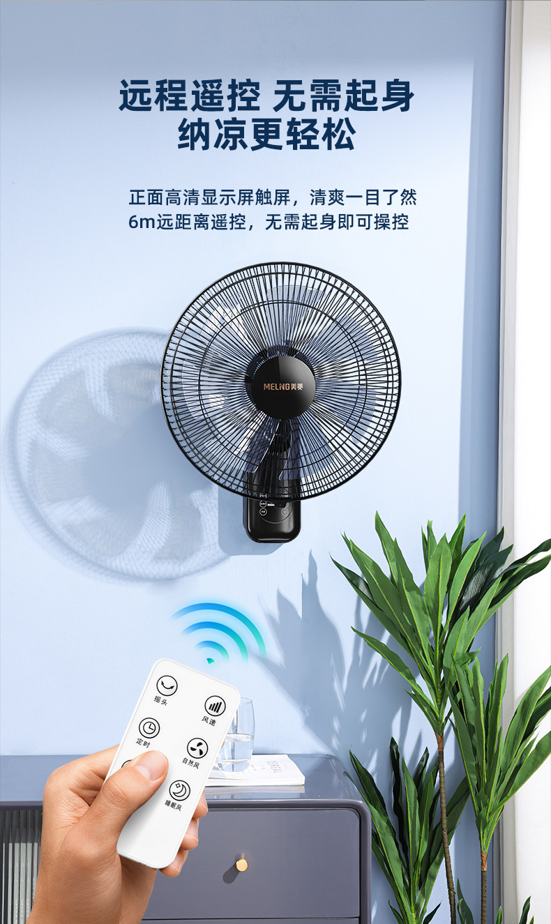 Meiling Wall Fan for Home Use, Wall-Mounted Electric Fan, Quiet and Powerful for Dormitories, Restaurants, Industrial Use, Large Wind Oscillating Fan 168