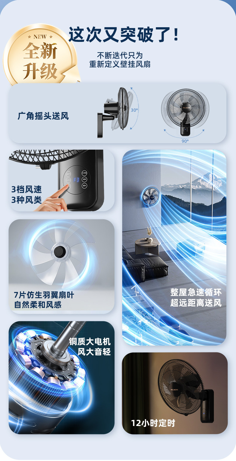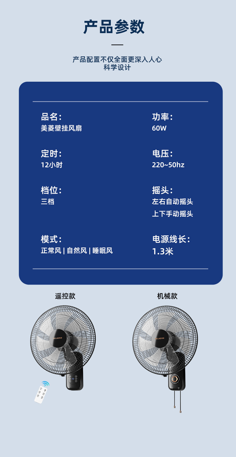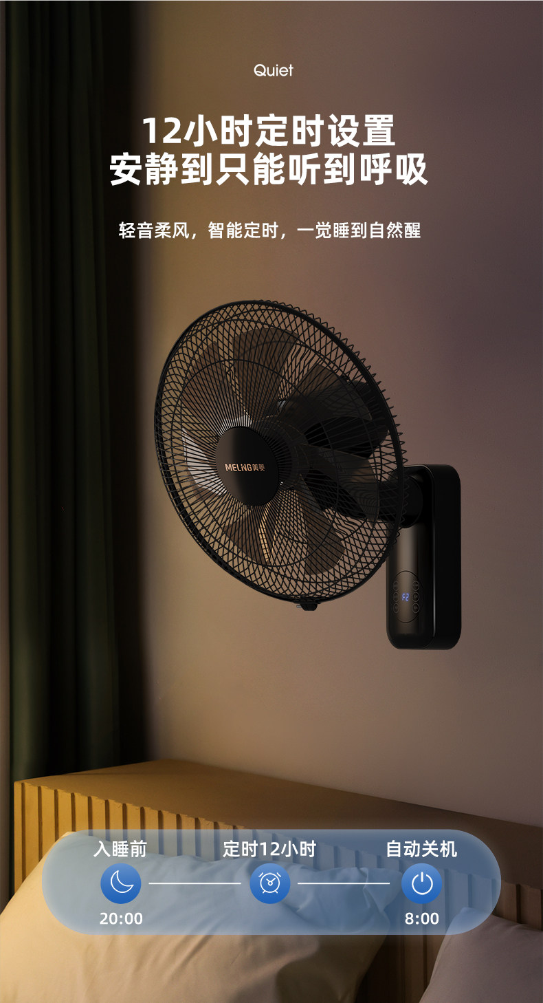 Meiling Wall Fan for Home Use, Wall-Mounted Electric Fan, Quiet and Powerful for Dormitories, Restaurants, Industrial Use, Large Wind Oscillating Fan 168