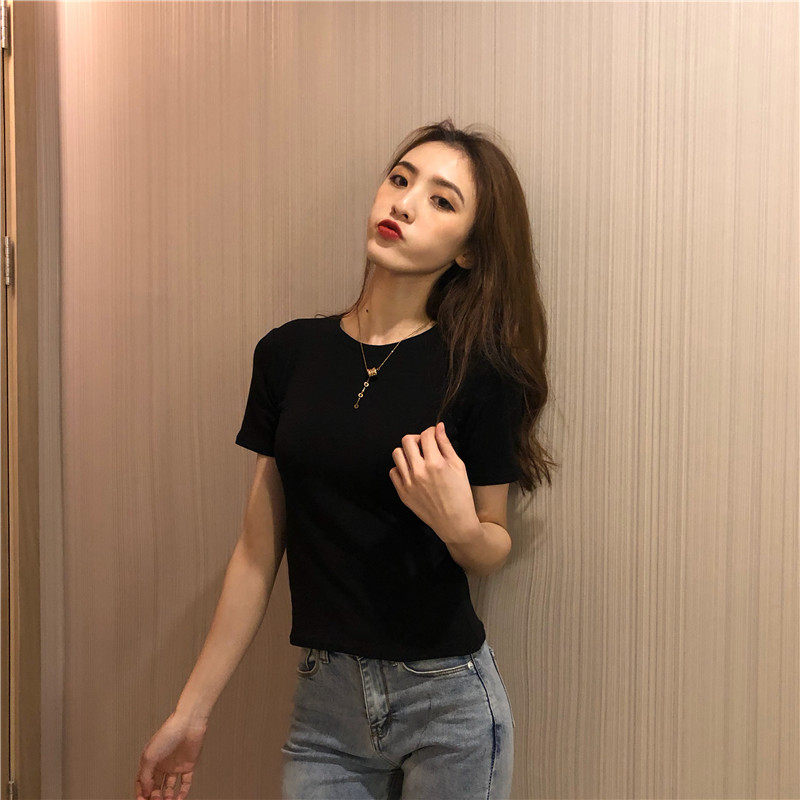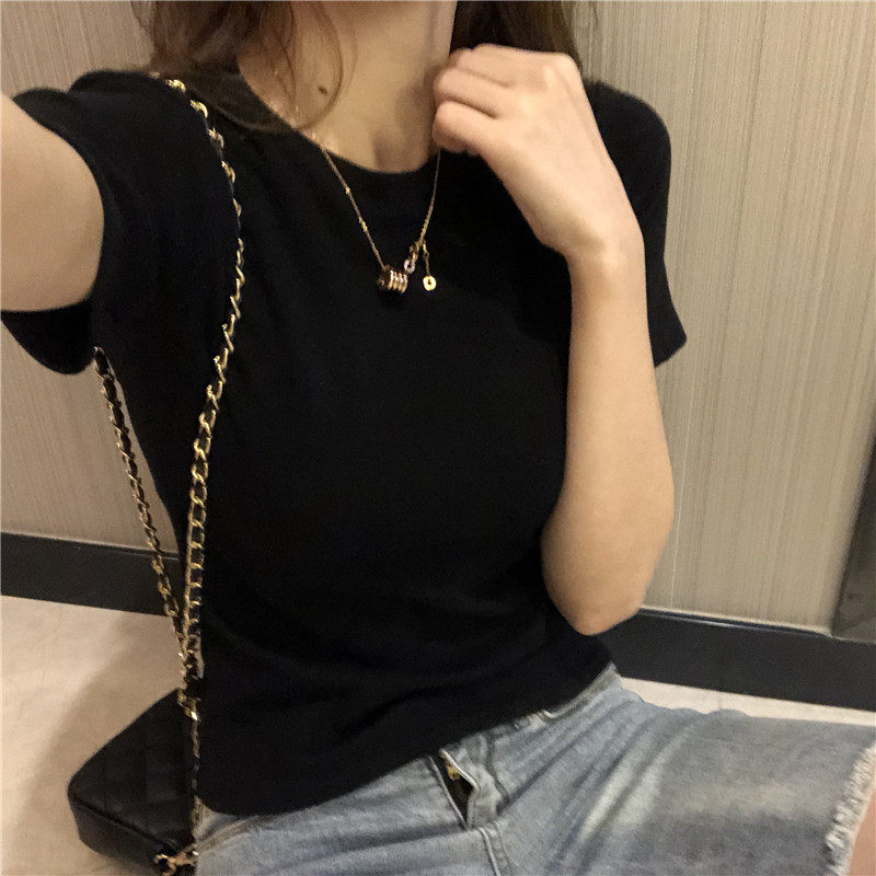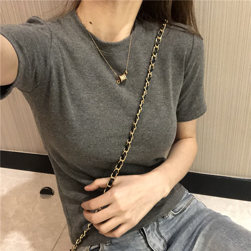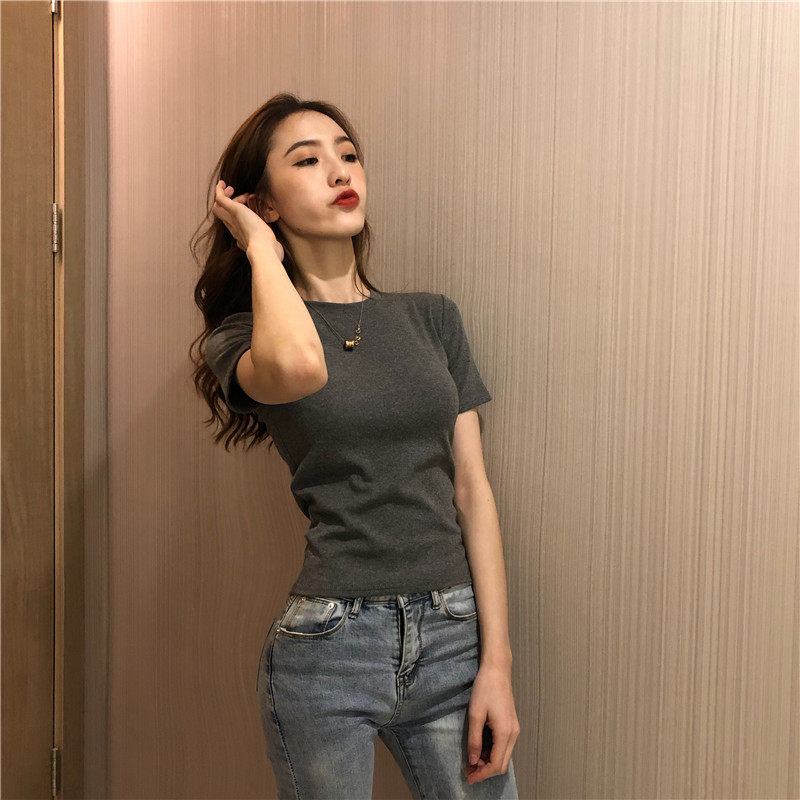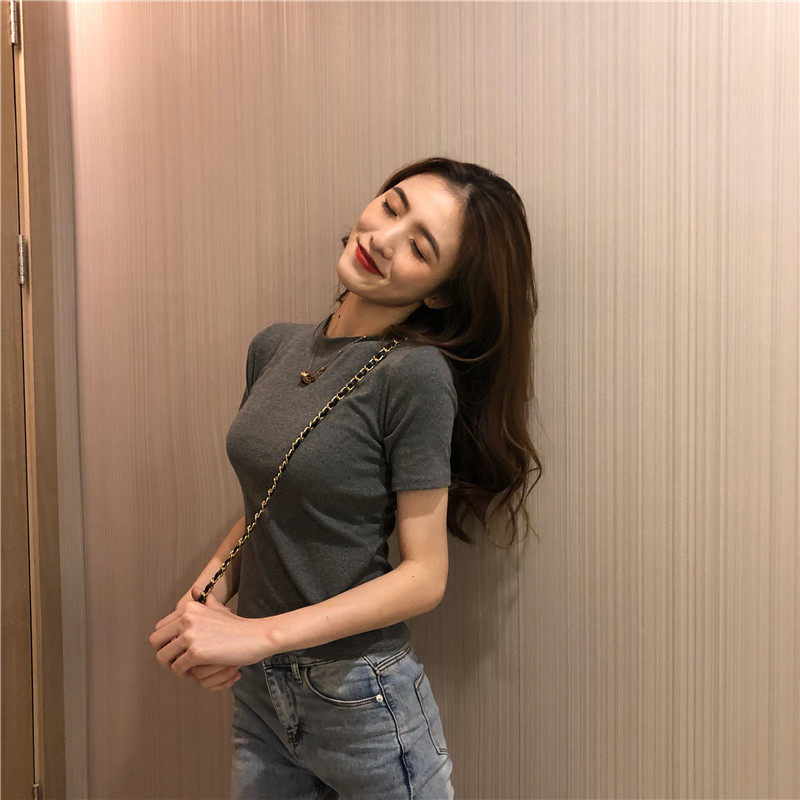 Basic Gray Short-Sleeve T-Shirt for Women, 2025 Summer New Korean Style Slim-Fit Base Shirt, Short Top ins