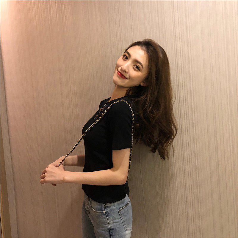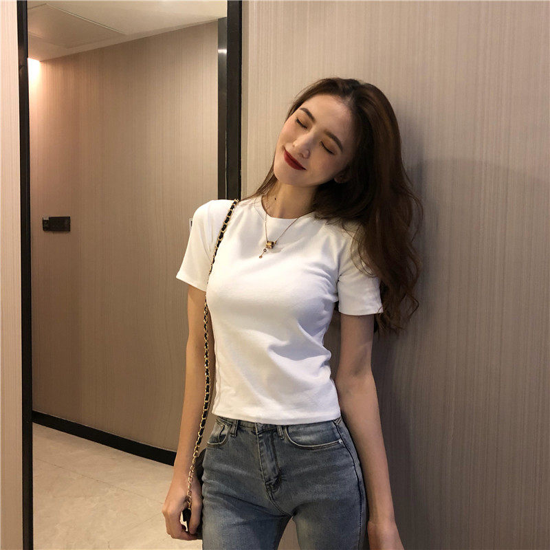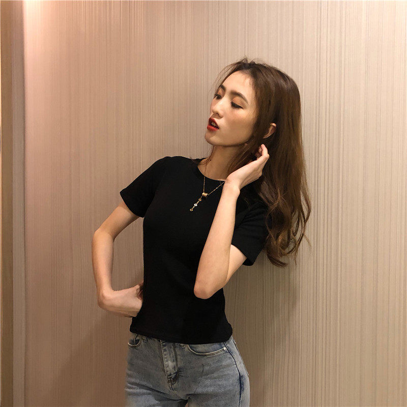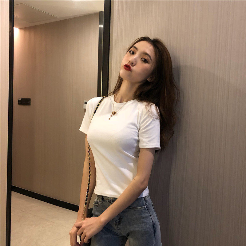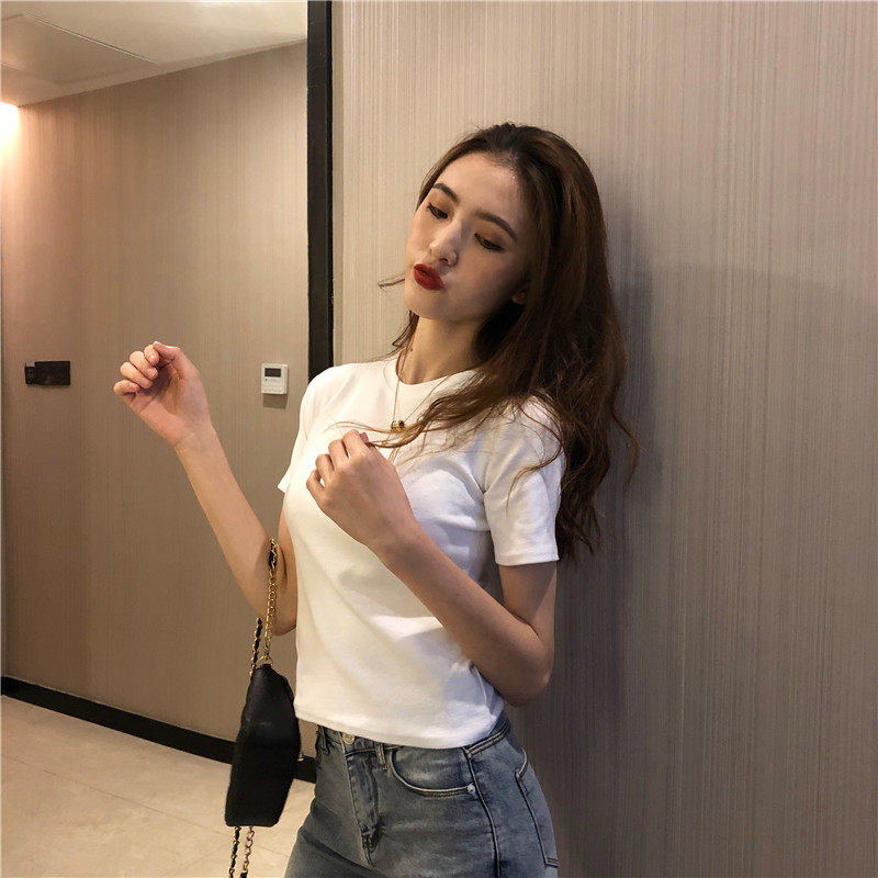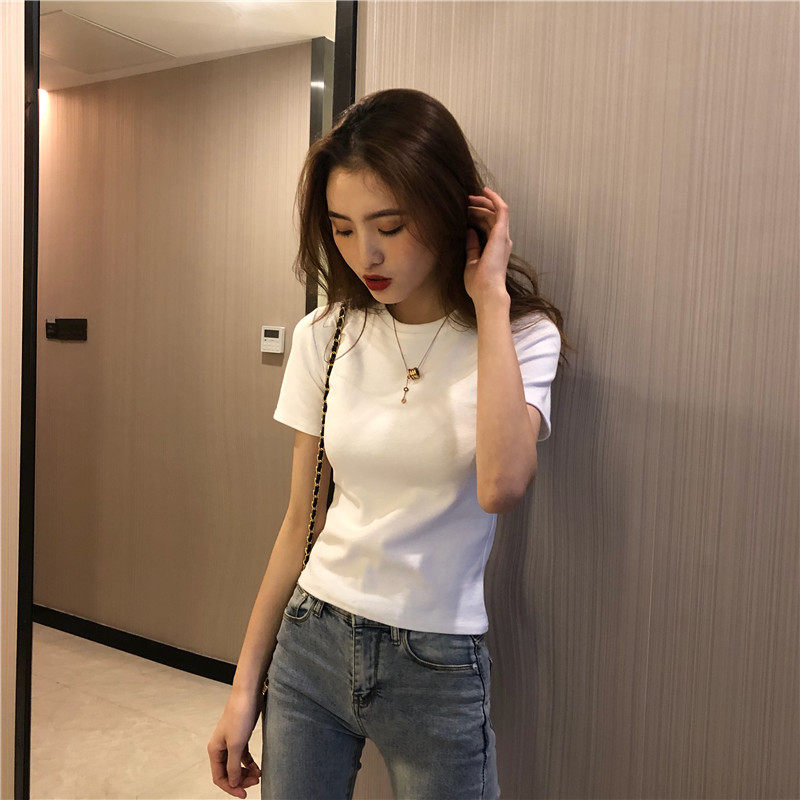 Basic Gray Short-Sleeve T-Shirt for Women, 2025 Summer New Korean Style Slim-Fit Base Shirt, Short Top ins
