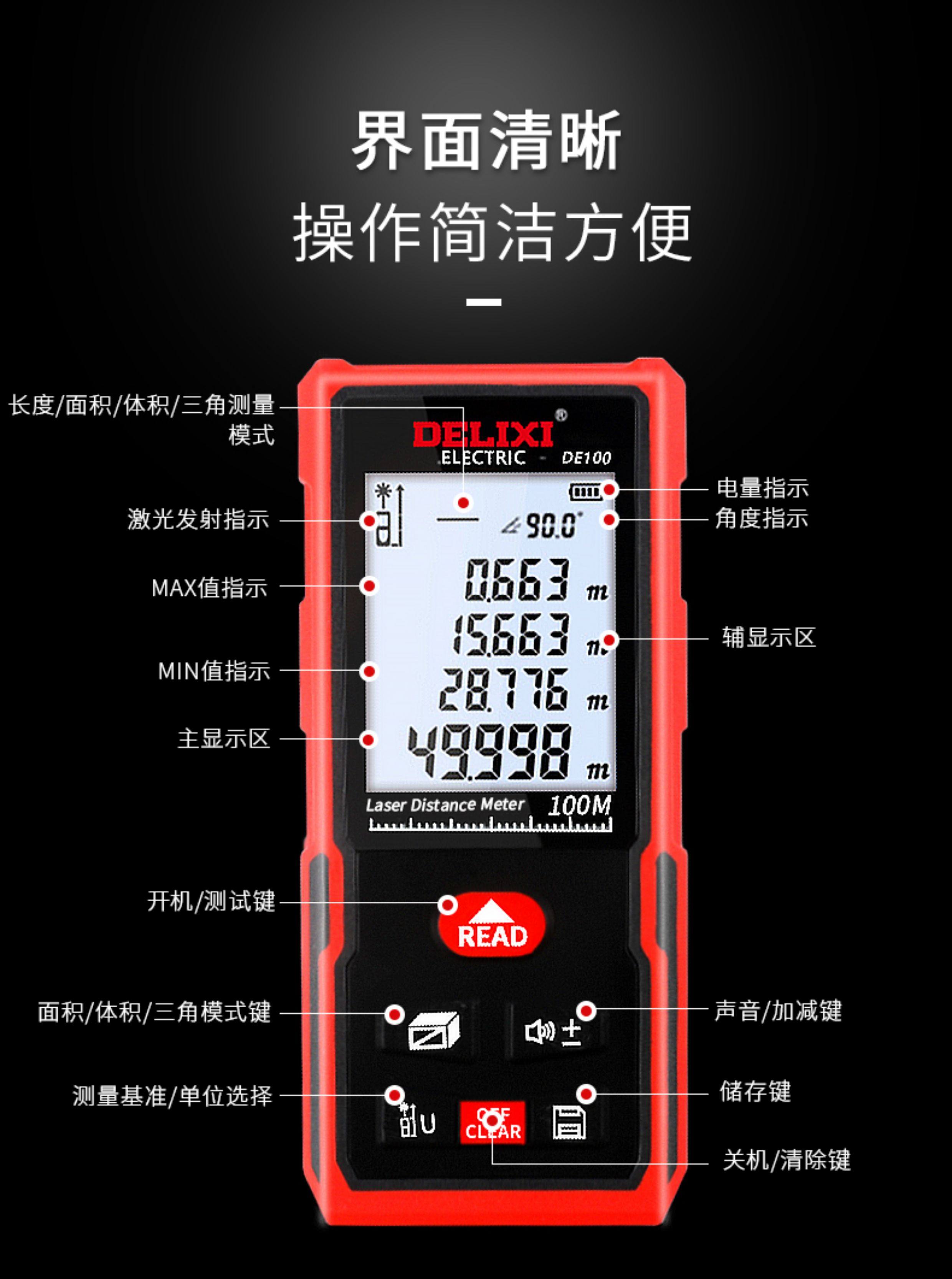 Delixi laser range finder infrared measuring instrument room measuring instrument electronic ruler high-precision level handheld artifact
