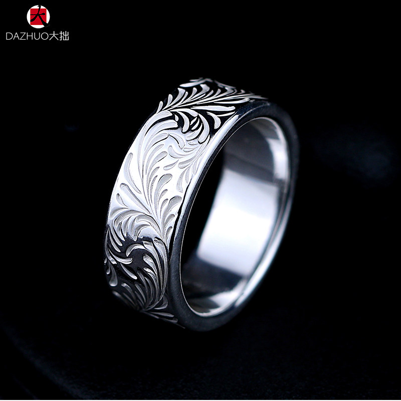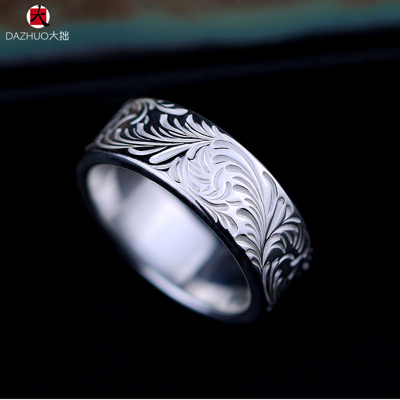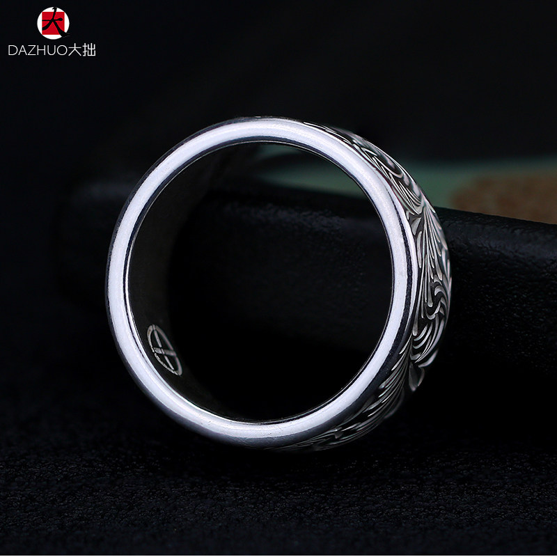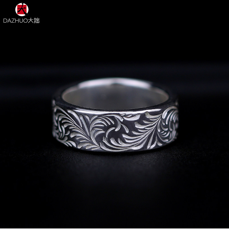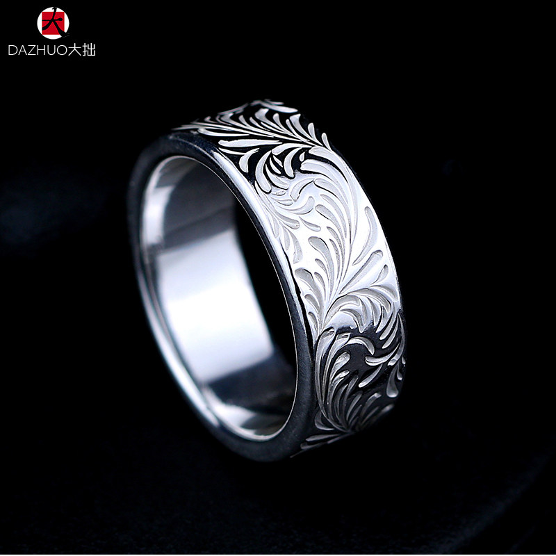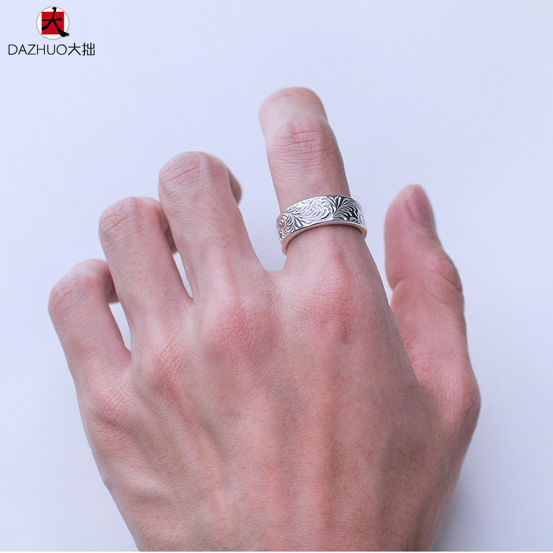 Da Zhuo KEN KIKUCHI Kikuchi Ken style full circle plain Tangcao flat ring 925 sterling silver handmade silver jewelry