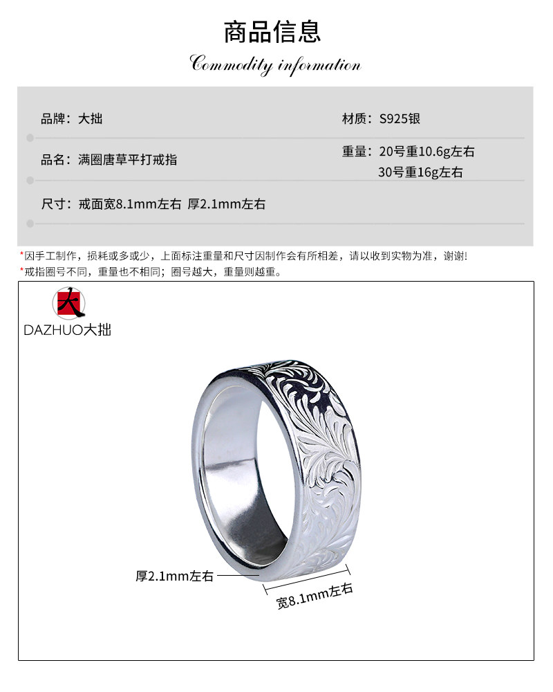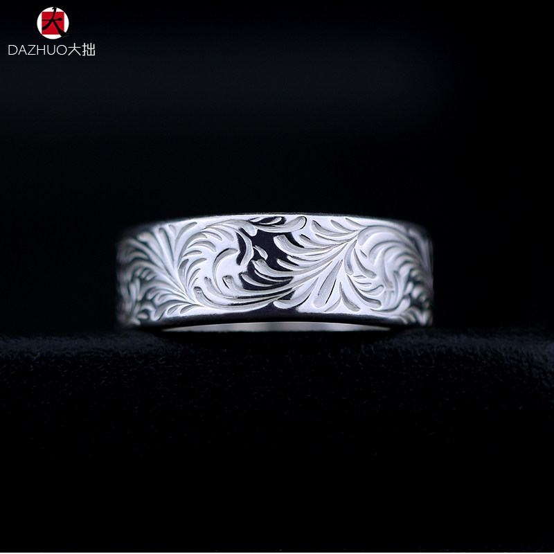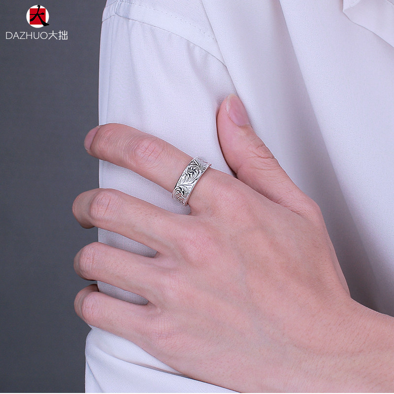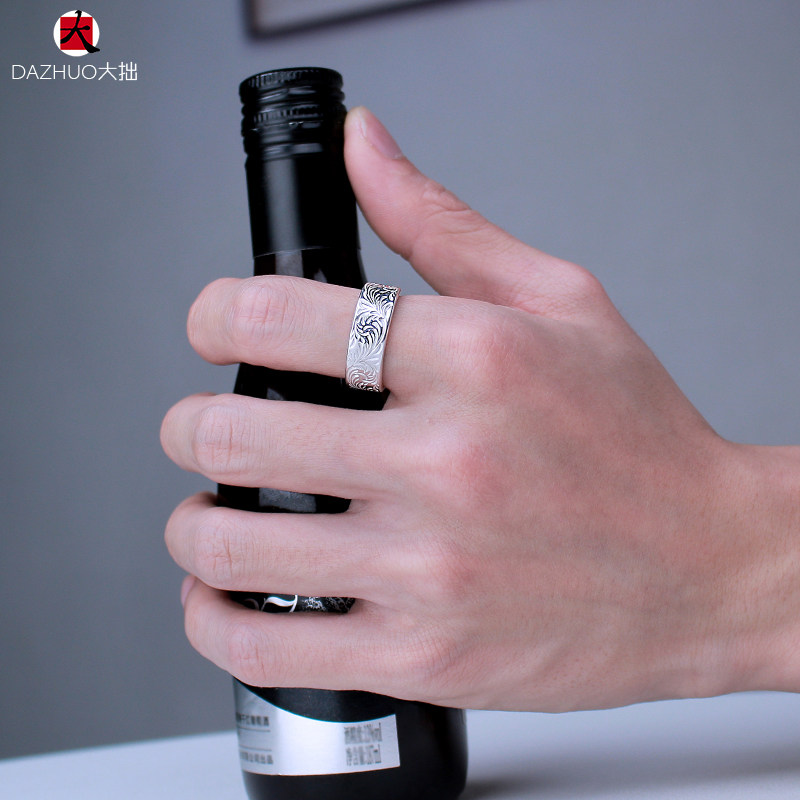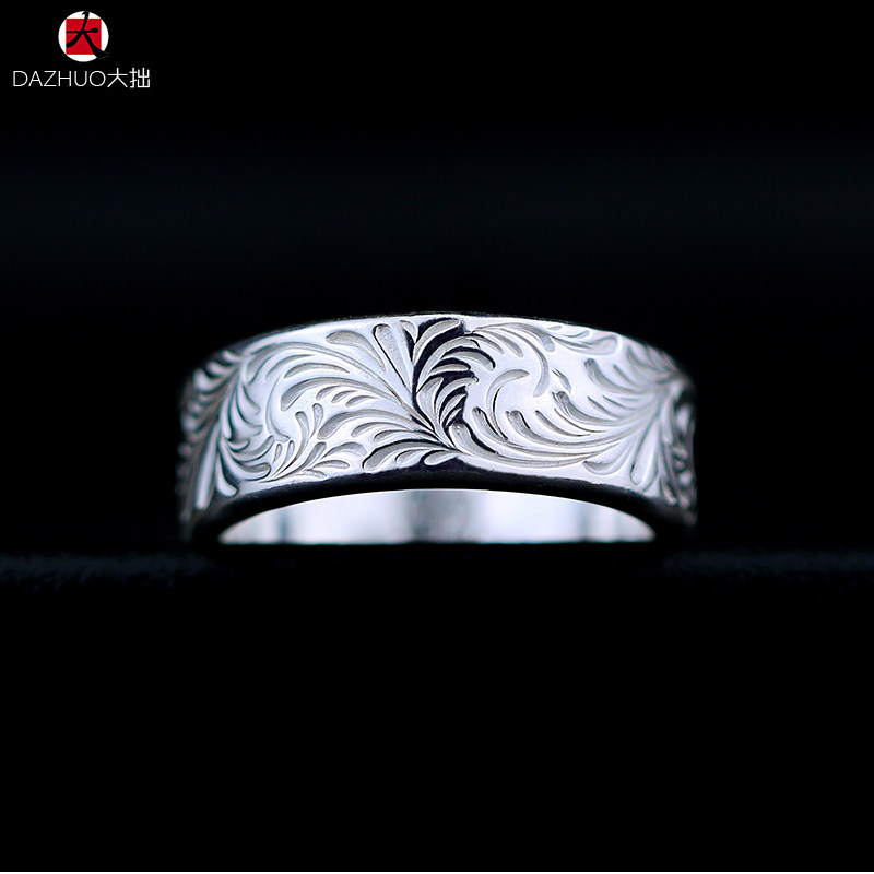 Da Zhuo KEN KIKUCHI Kikuchi Ken style full circle plain Tangcao flat ring 925 sterling silver handmade silver jewelry